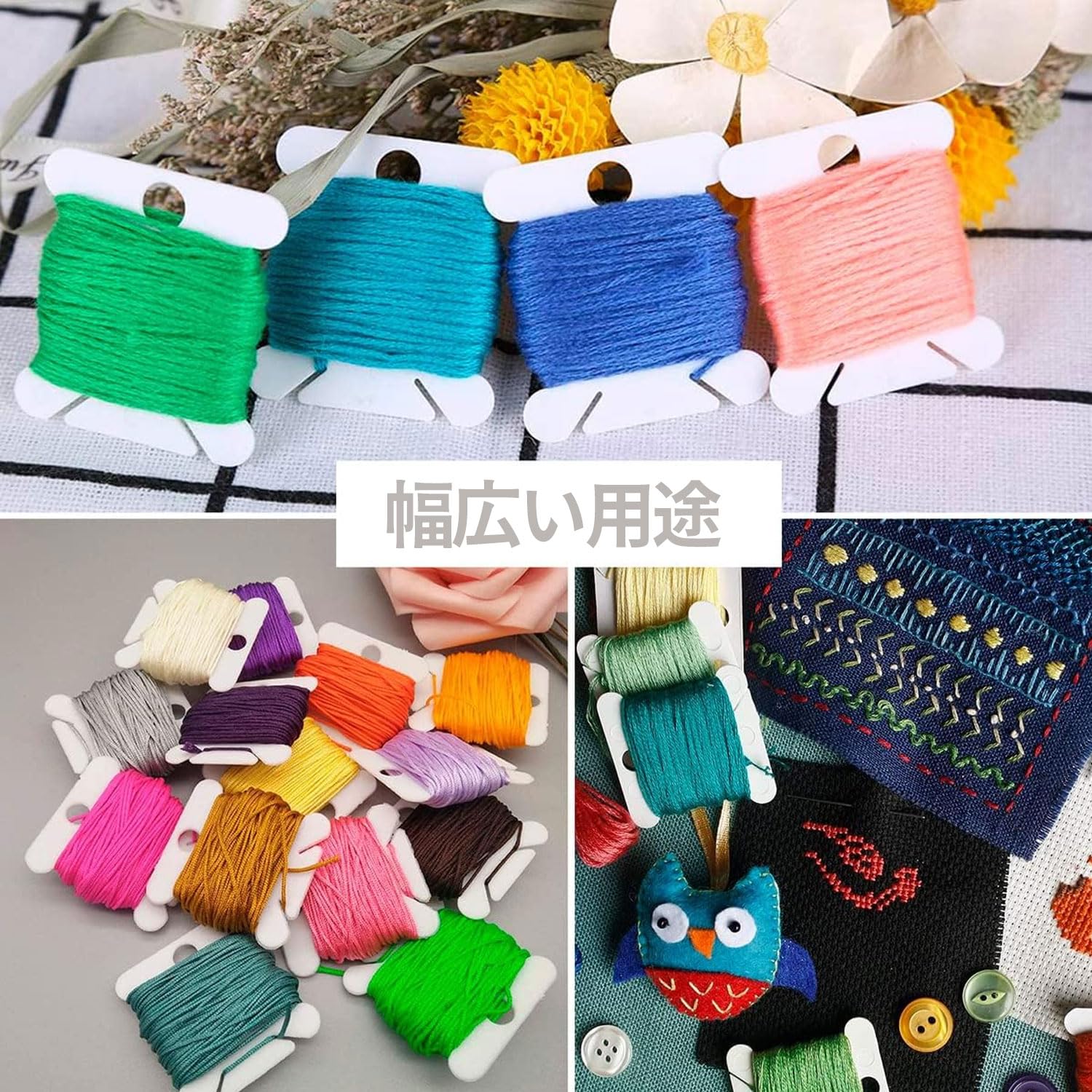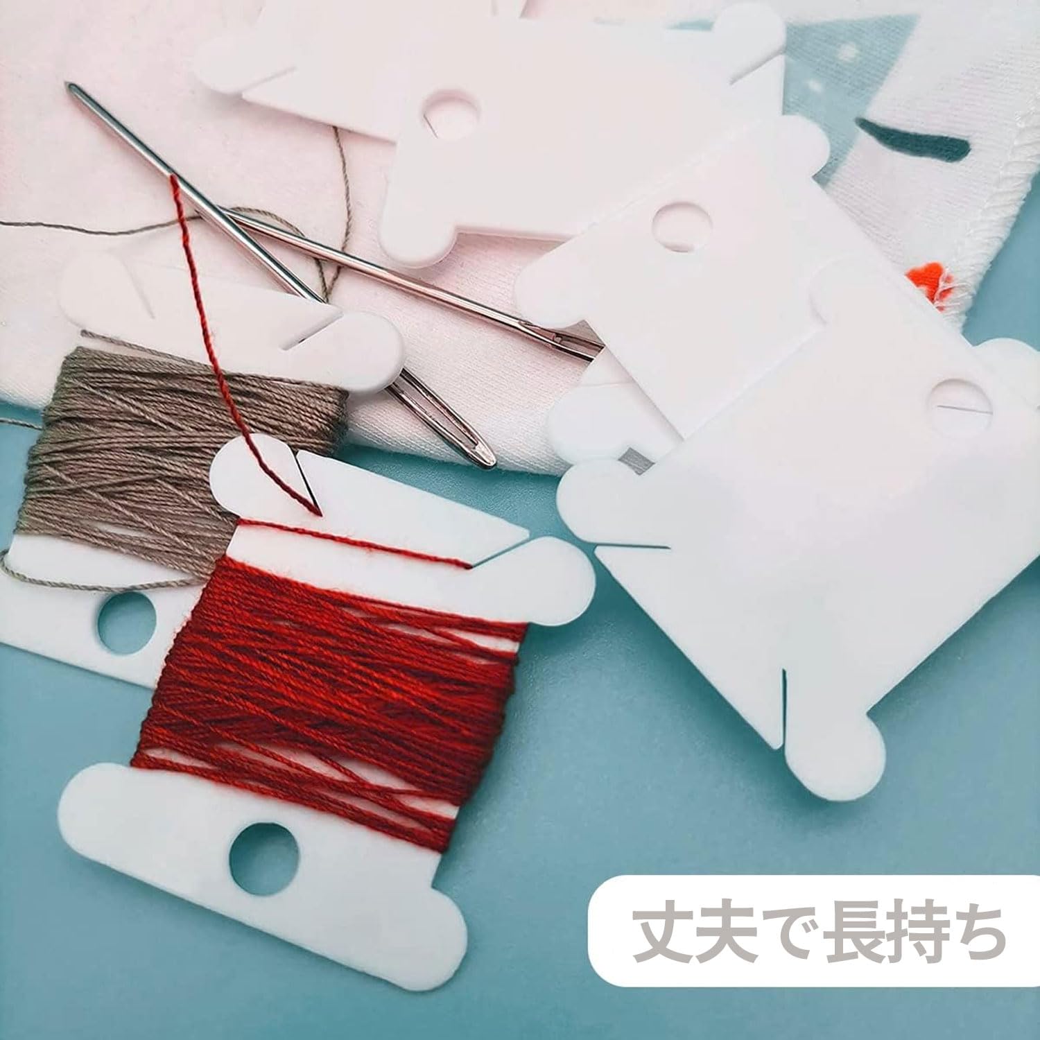 【糸巻き】柔らかい素材で刺繍糸を傷つけずに包み込み、きれいに揃えることができます。使いやすく、持ち運びも簡単。繰り返し使えます。