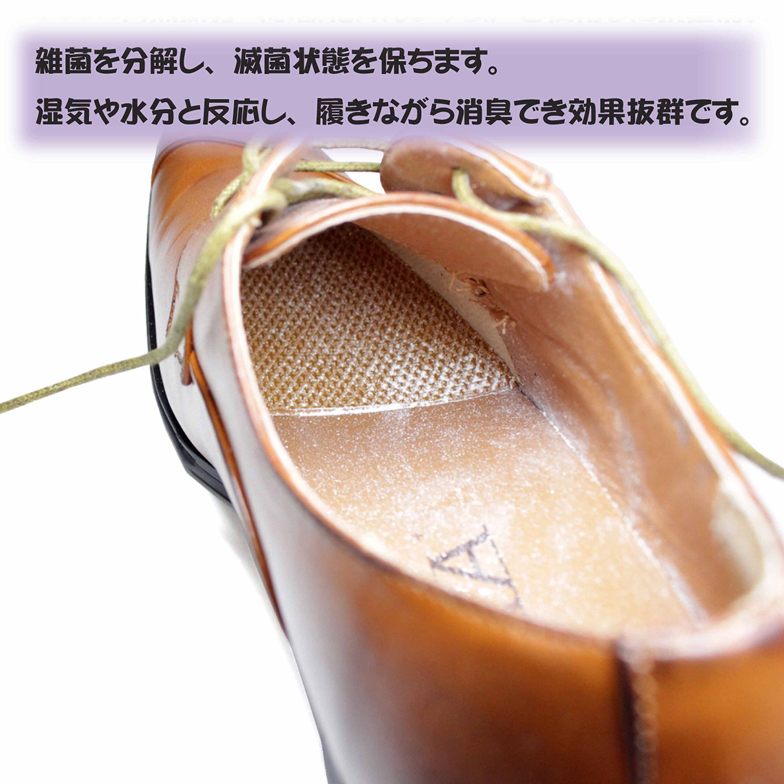 雑菌を分解し、滅菌状態を保ちます。湿気や水分と反応し、履きながら消臭でき効果抜群です。