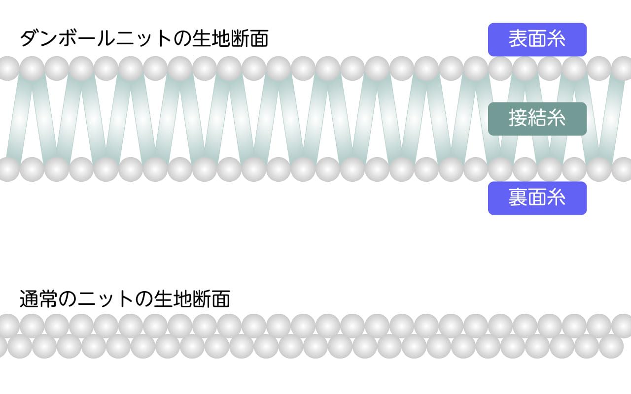 極厚スプリング構造のクッションニット生地で、中わたの凹凸を感じにくい