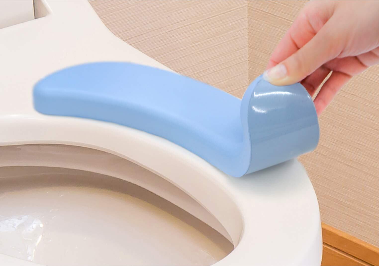 ピタッと便座に乗せるだけ。程よい反発力のクッションで長時間座っても、柔らかさが持続します。しっかり吸着するので、便座を立てても落ちたりずれたりしません。