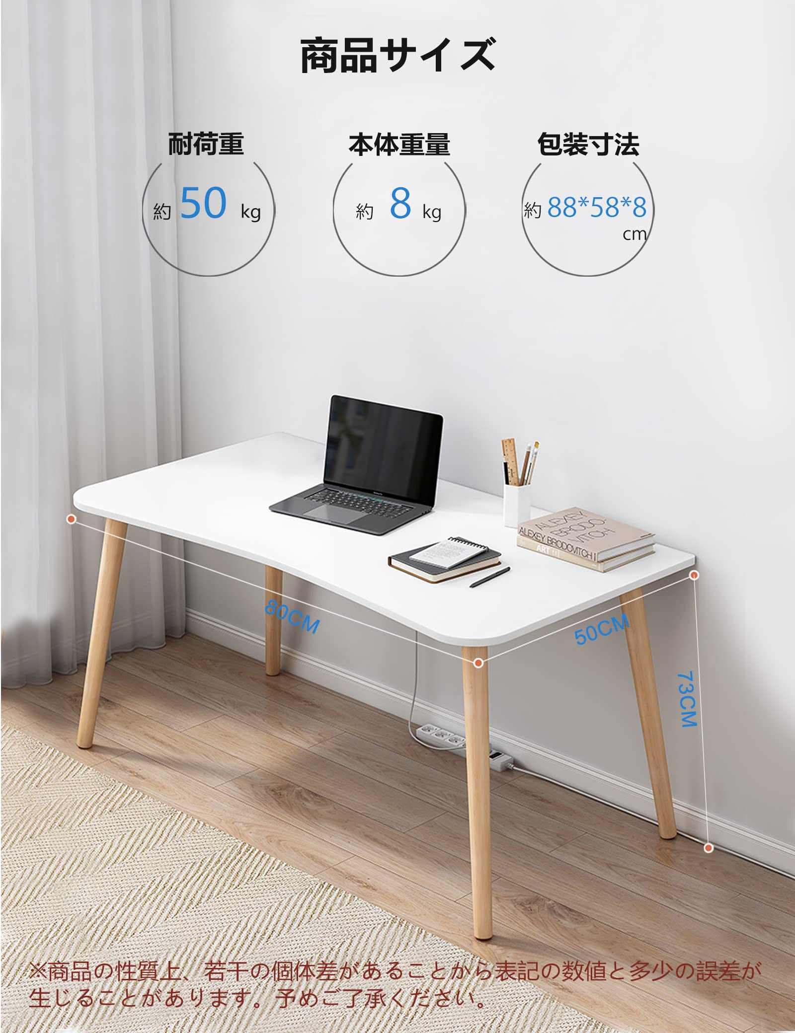 デスク パソコンデスク 勉強机 北欧 木製 机 幅80cm×奥行50cm PCデスク 在宅勤務 リモートワーク用 おしゃれテーブル シンプル 化粧台 作業机 仕事用 組立簡単 (幅80cm 白い)