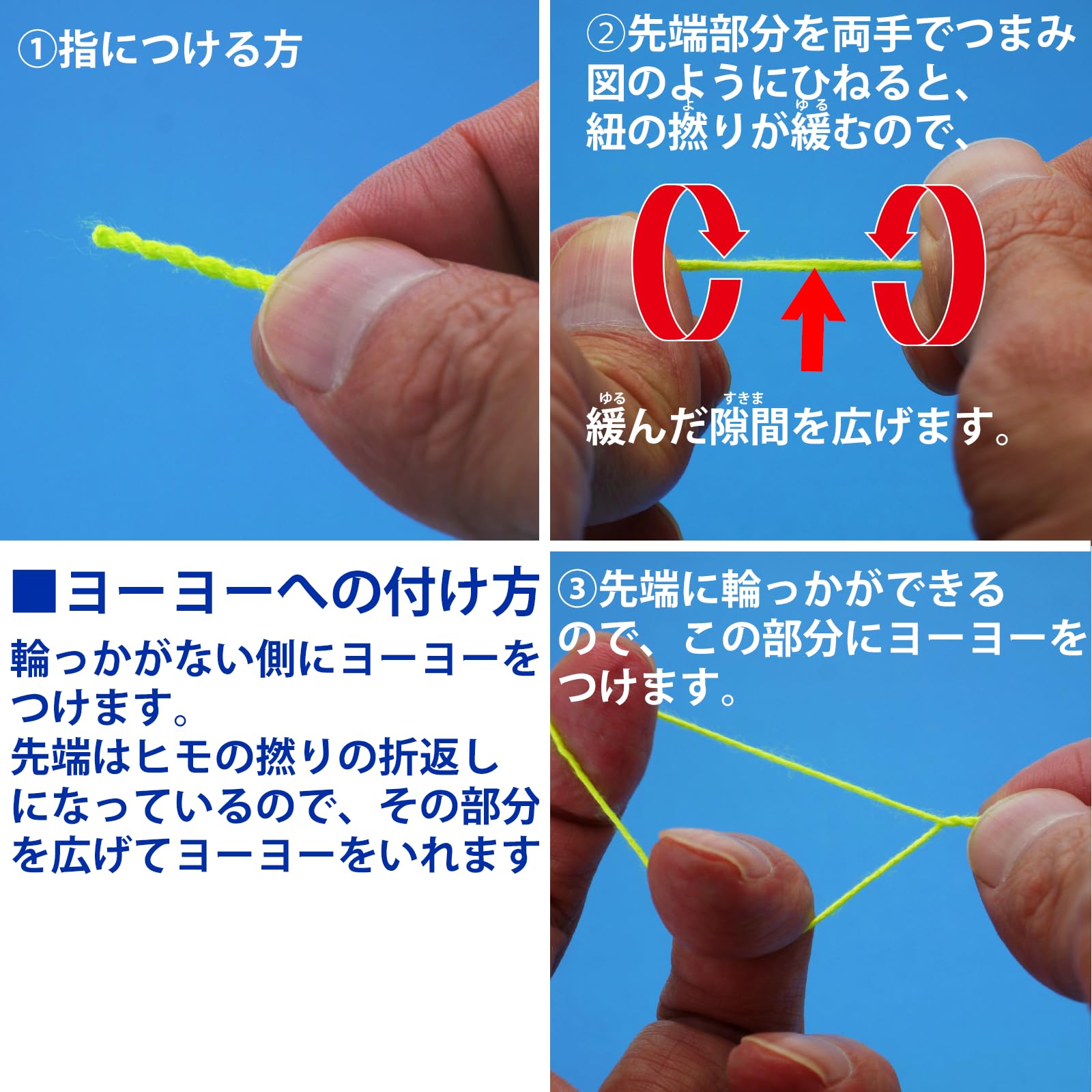 対象:スピンガジェットやステップシリーズほか、競技向け、ハイパーヨーヨーなどで幅広く使用できるヨーヨー専用ストリング