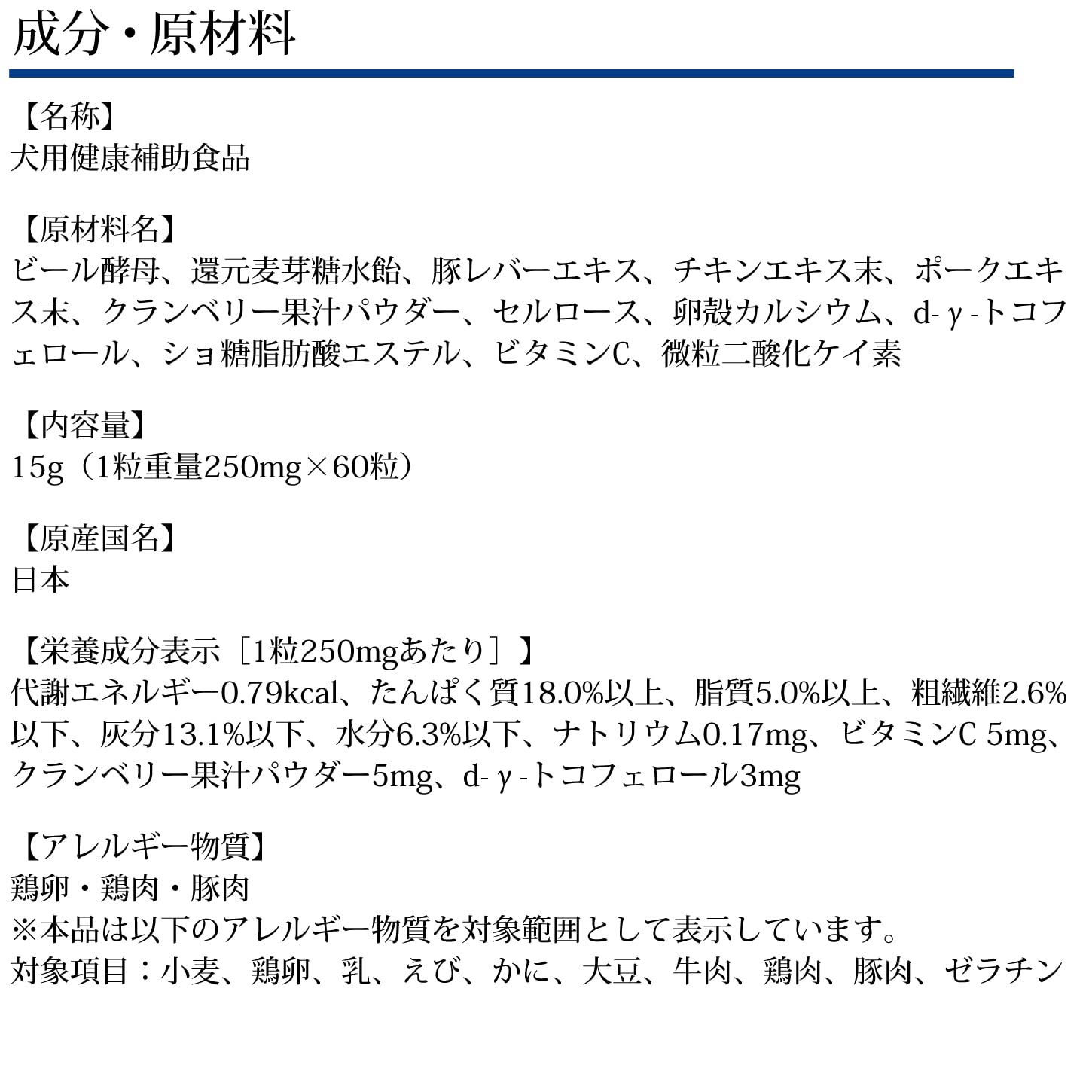 パッケージをご確認の上、原材料など食品アレルギーのある犬には与えないで下さい