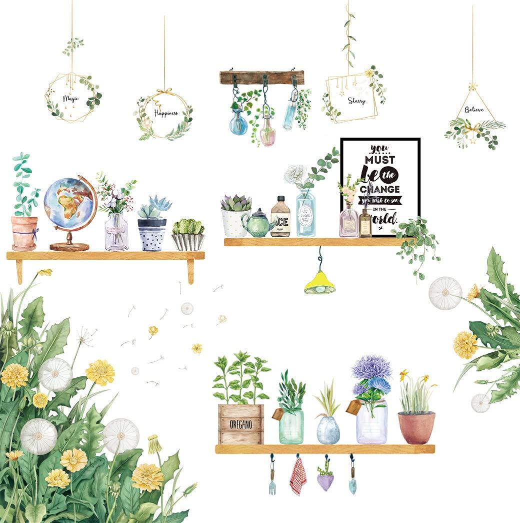 ウォールステッカー おしゃれ たんぽぽ 花 木 鉢植え 壁紙シール ウォールペーパー 植物 剥がせる 防水 PVC素材 インテリア DIY シール 北欧風 部屋飾り (たんぽぽや鉢植え)