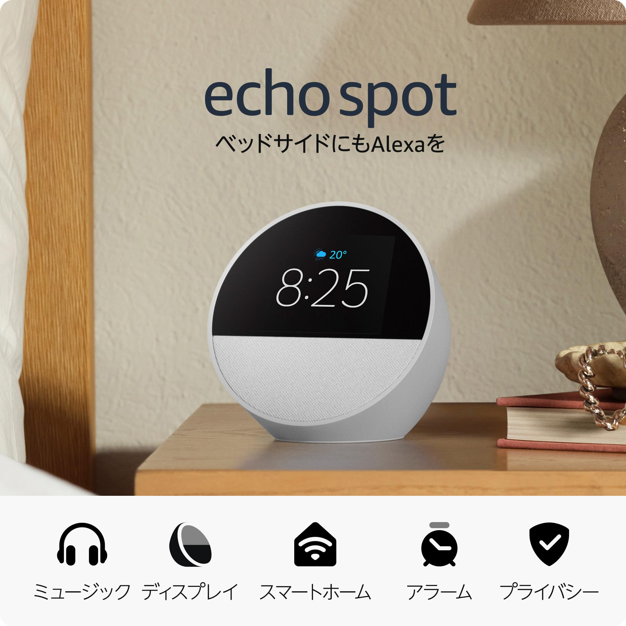 Echo Spot(2024年発売) - スマートアラームクロック with Alexa、鮮やかなサウンド | グレーシャーホワイト