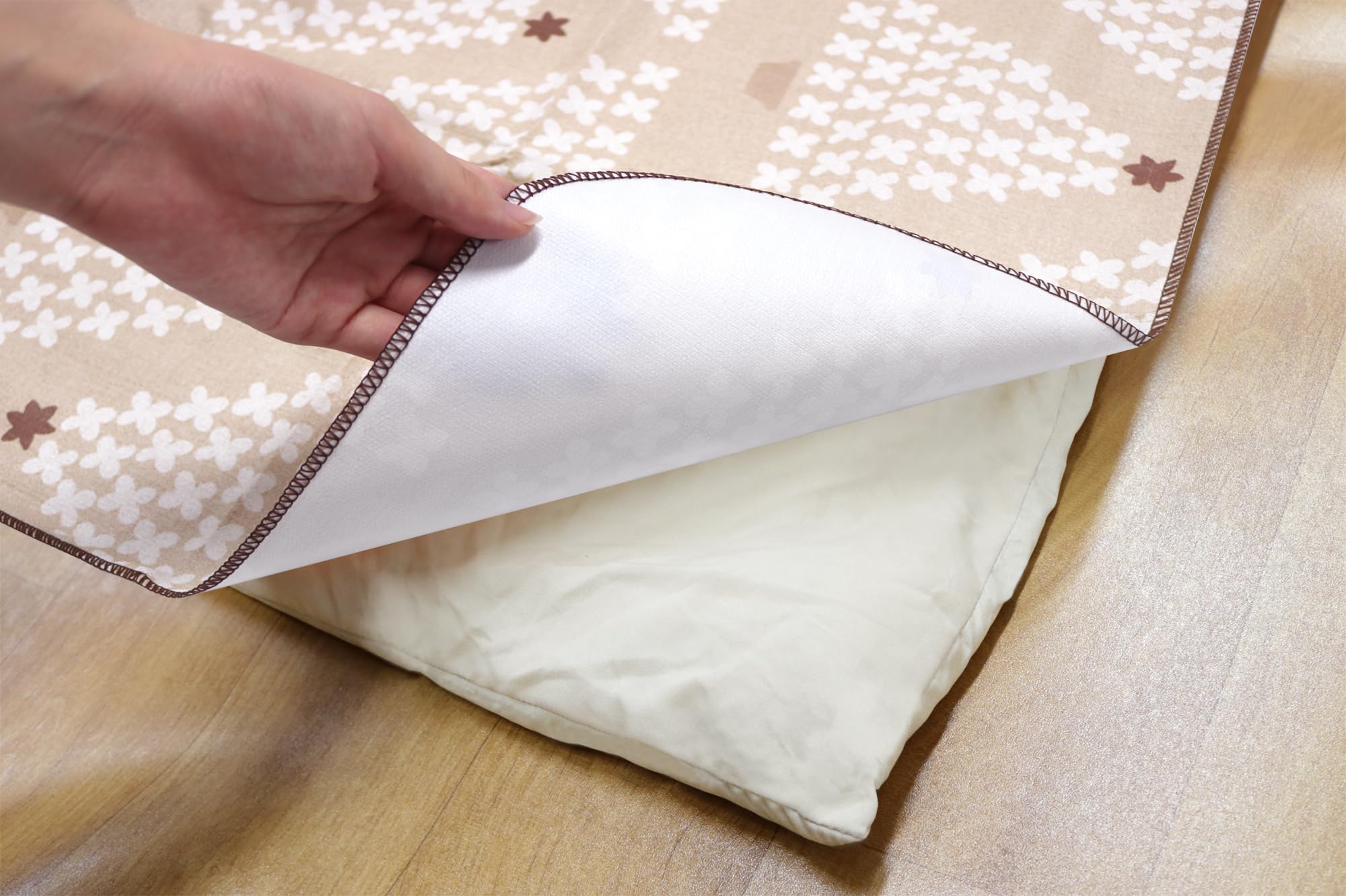■お手入れしやすい防水仕様 PVC素材を使用しているので、汚れてもサッと拭くだけでOKです。食べこぼしや飲み物をこぼしても染み込まないので、小さなお子様やペットがいるご家庭におすすめ!こたつ布団が汚れるのを防ぐことができます。(洗濯機は使用できません)