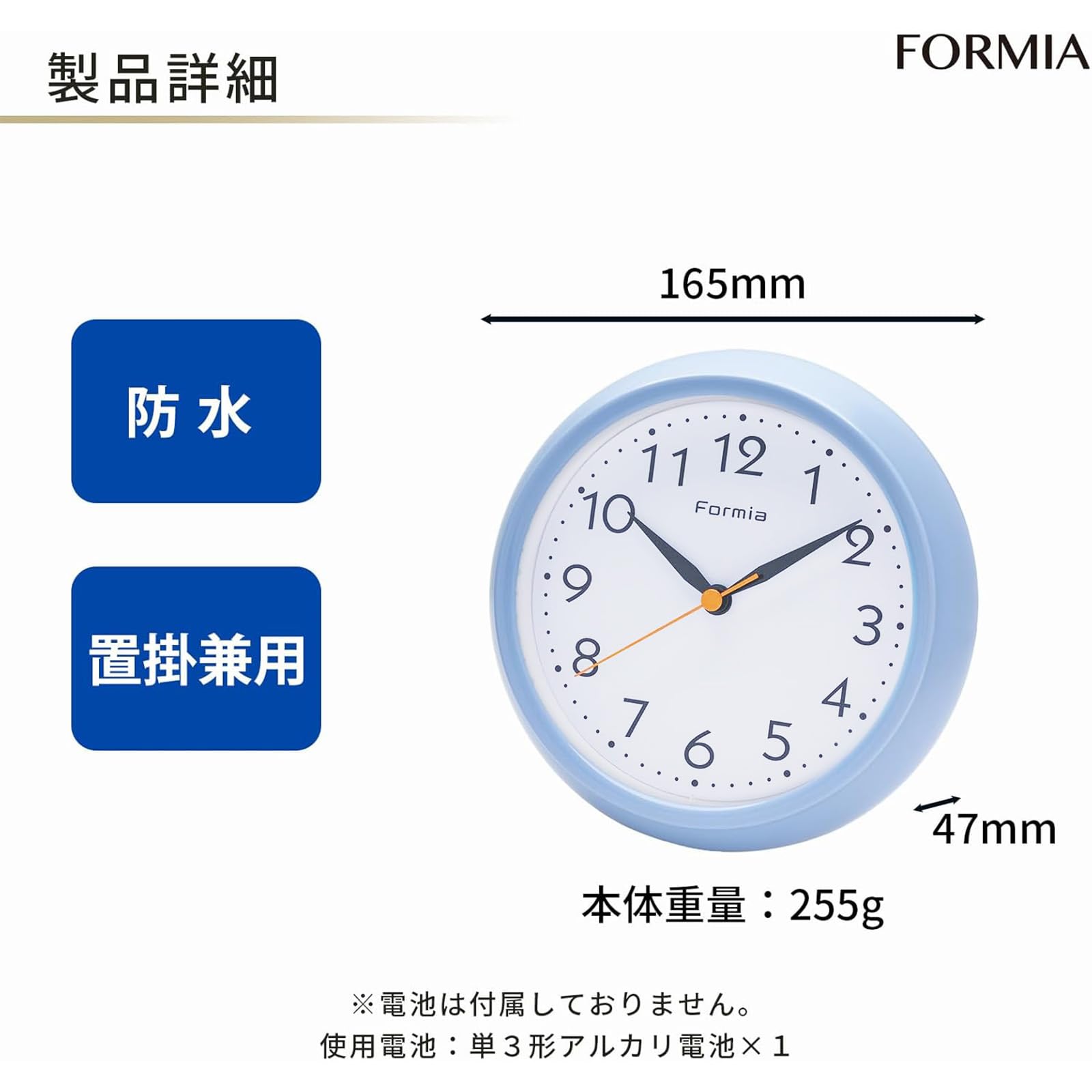 Formia(フォルミア) バスクロック 掛時計 防水 お風呂 置き掛け兼用 アナログ 保土ヶ谷電子販売 ブルー HWP-001S-BU