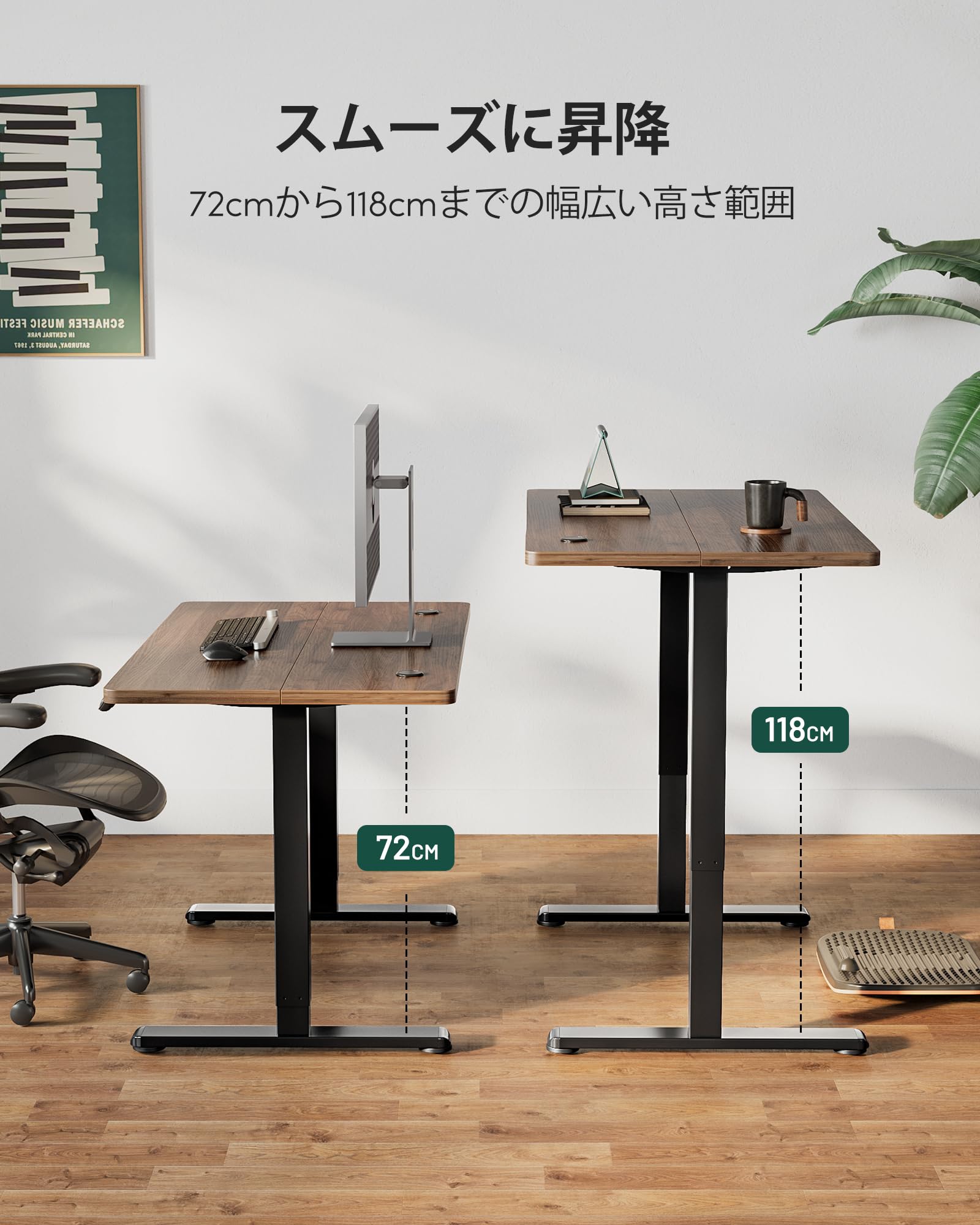 Cubiker 電動 昇降式デスク スタンディングデスク 幅100cm 奥行60cm 人間工学 上下昇降 ミーティングテーブル 一人暮らし テレワーク オフィスワーク 在宅 高さ調節 おしゃれ メモリ機能 スタンドアップテーブル ブラックフレーム/くるみ天板