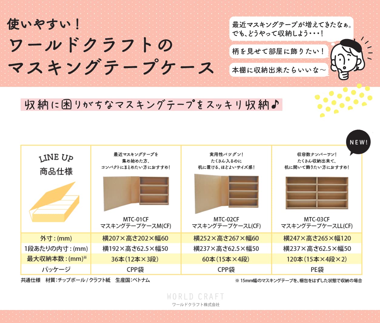 そんなお客様の声から生まれた、コレクションにピッタリ! 15mm幅が36個収納できるクラフト素材のマスキングテープケース「Mサイズ」です。