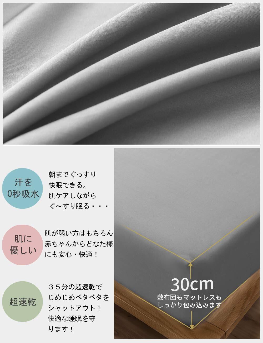 ボックスシーツ 吸水速乾 シーツ ベッドカバー マットレスカバー 抗菌・防臭 (ダブル・140×200cm グレー)厚さ5 cm~30 cmのマットレスに適しています