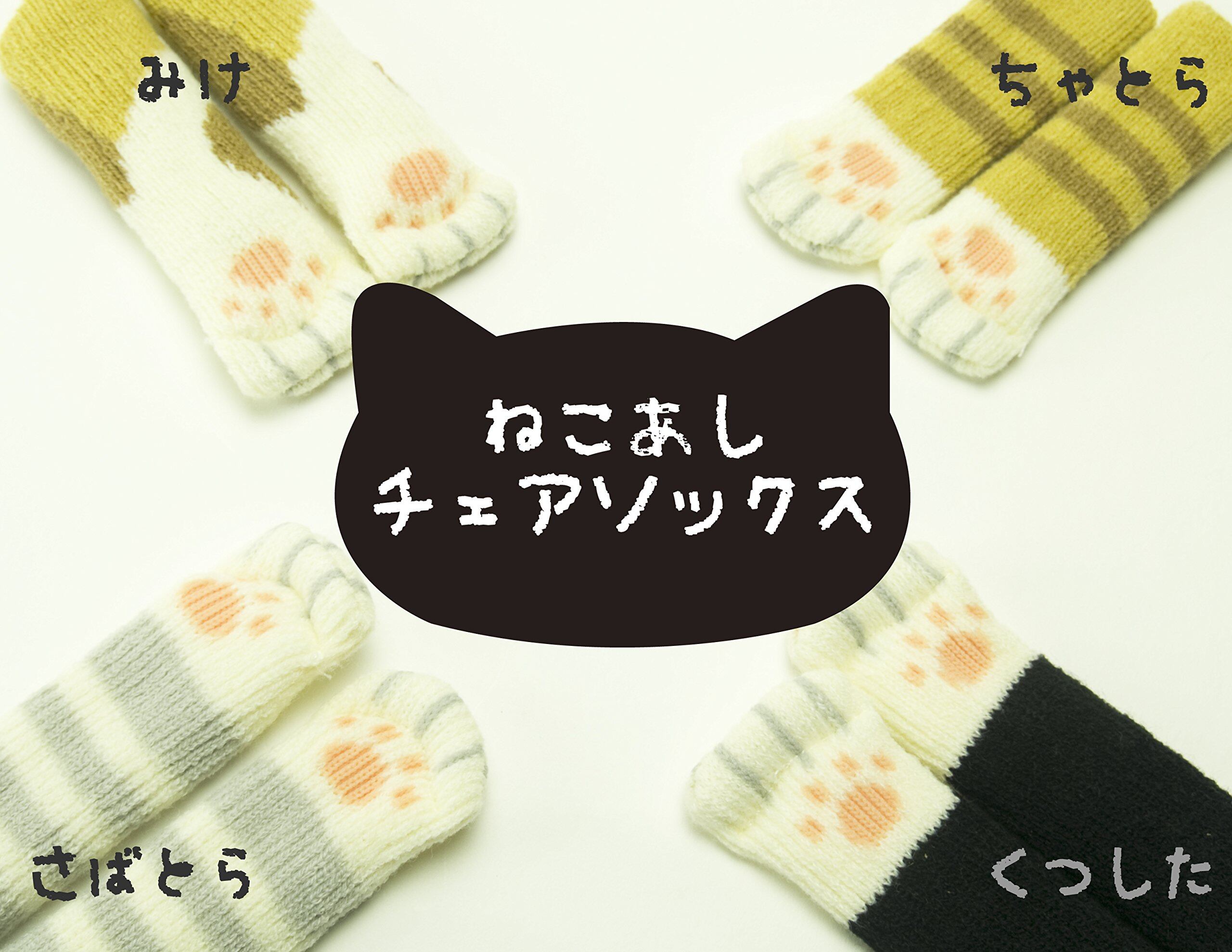 東洋ケース いす 脚カバー 騒音・傷防止 ねこあしのチェアソックス 4枚(椅子1脚分) ねこ(みけ) CSK-NA-01
