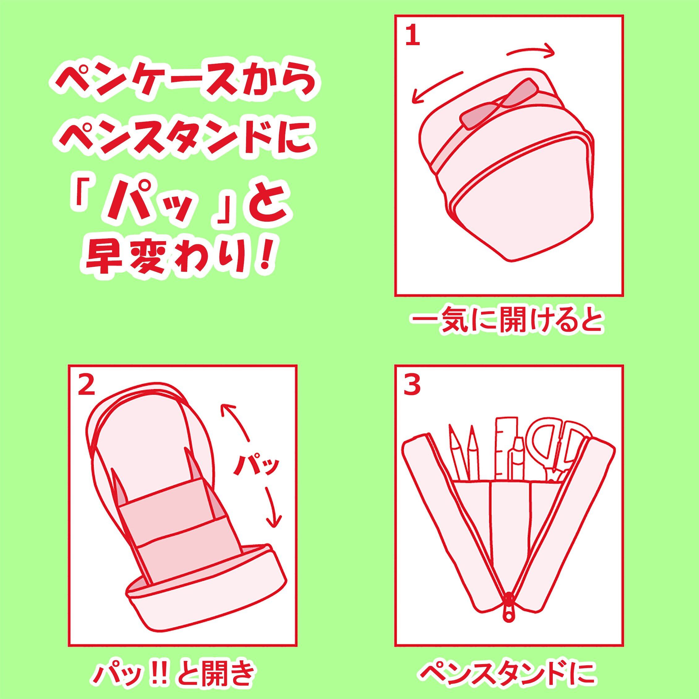 ファスナーを開けるとペンケースからペンスタンドにパッと早変わり