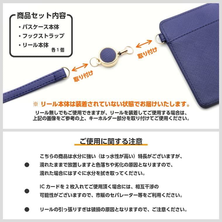高品質PUレザー素材を使用したリール付きパスケース。上部取付タイプ。サフィアーノ加工により水に強く、耐久性に優れたデザイン。