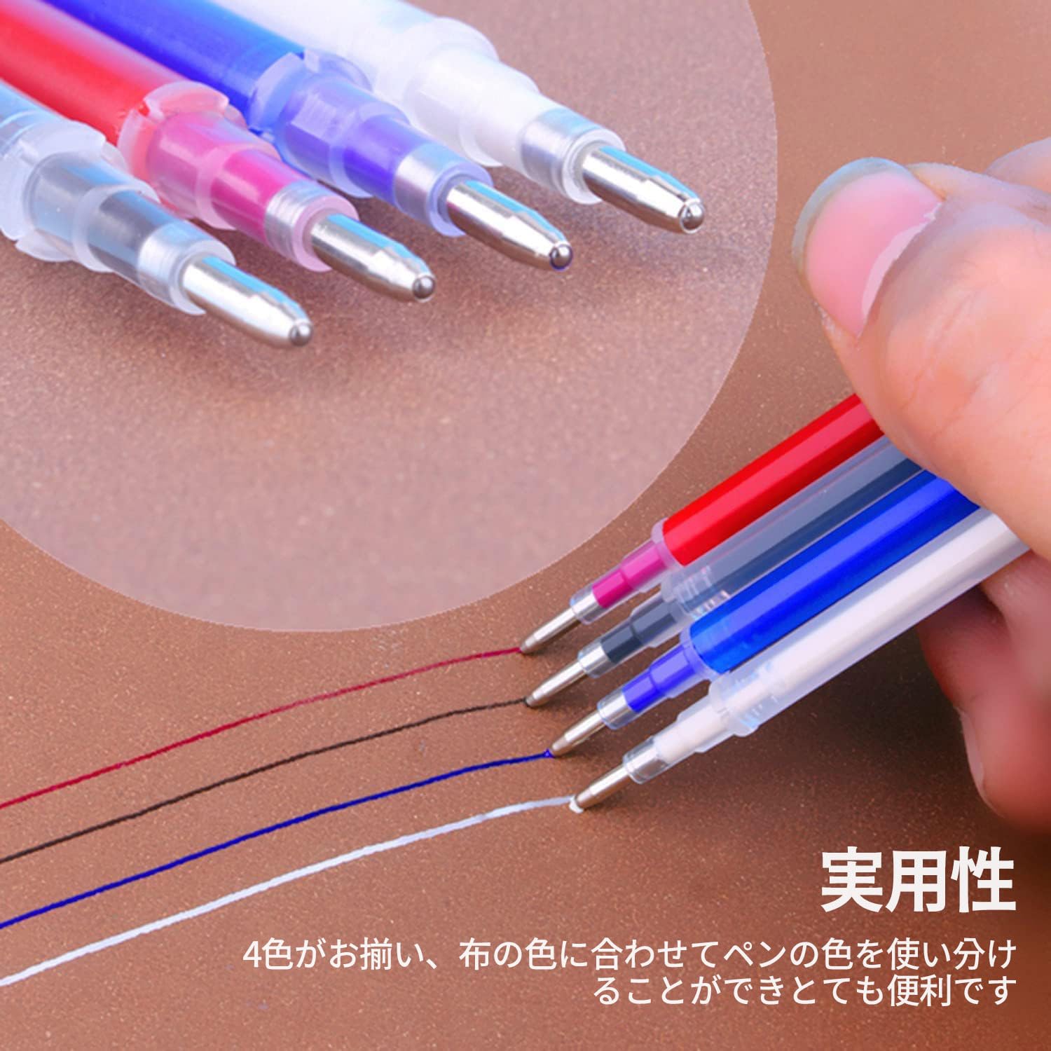 【非常に実用的】4色展開で、生地の色によってカラーペンを使い分けることができ、とても便利です。