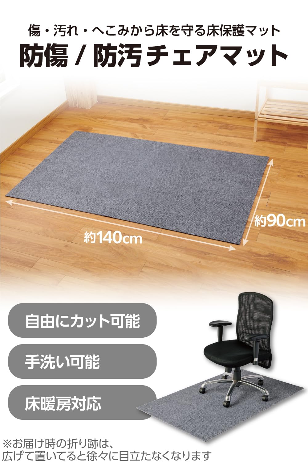 エレコム チェアマット 90cm×140cm 厚さ4mm ずれにくい ノンスリップ加工 マット デスク 椅子 移動スムーズ 吸音 床傷防止 滑り止め 丸洗い可能 床暖房対応 グレー FB-CM01GY-AZ | geisha Cat*
