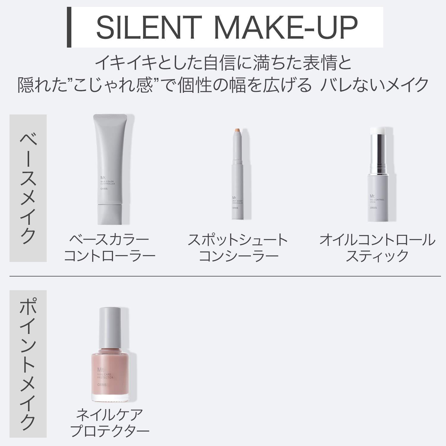 Mr.のメイクアイテムの根底にあるのは"SILENT MAKE"過剰な自己主張や男らしさへの強迫観念を脱ぎ捨てて「いつもよりちょっとかっこ良くて、おしゃれな自分」を叶えます。