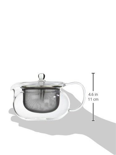 【商品詳細】本体サイズ:幅14.3×奥行9.8×高さ9.8、口径9.4cm、本体重量:約220g、実用容量:300mL、本体材質:本体・フタ/耐熱ガラス、日本製、茶こし/ステンレス、中国製