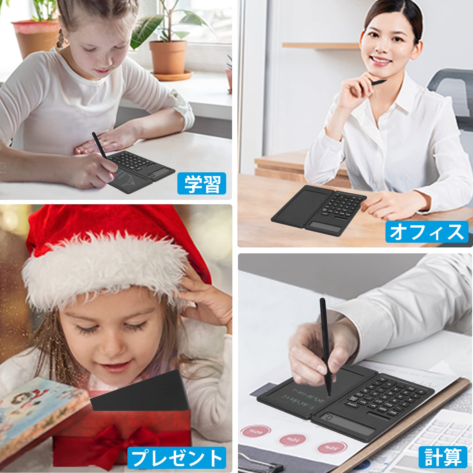 【電卓付き電子メモパッド】計算機と電子メモの組み合わせで、電卓で計算した内容をメモに記録できます。12桁の表示値がクリアでクリアなため、効率が向上します。