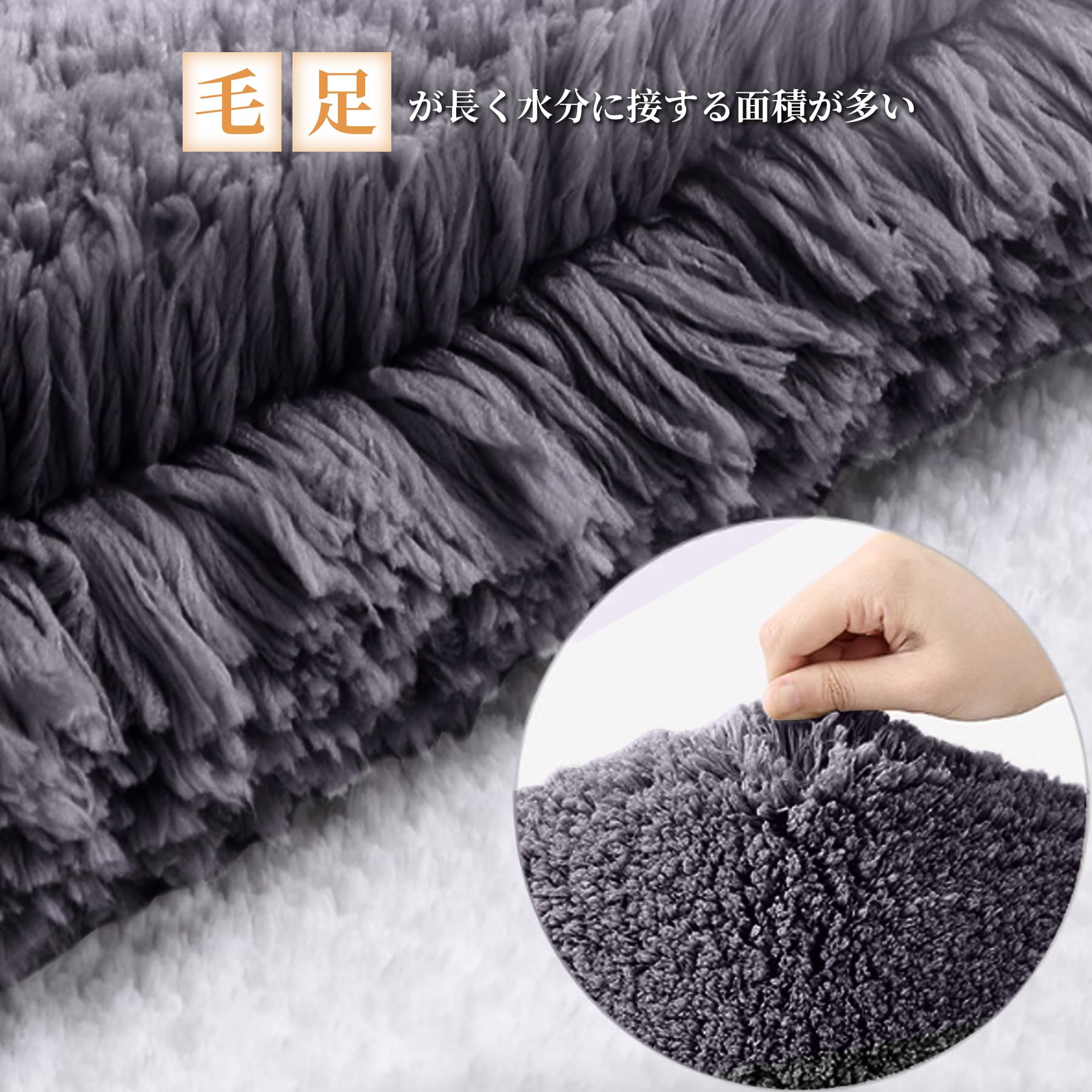 【吸水性と速乾性】マイクロファイバーの表面には無数の吸水孔があり、瞬時に水分を吸収することができます。入浴後の水滴を十分に吸収し、足を乾燥させます。マイクロファイバーの材質は通気性が強く、表面の水分はすぐに蒸発します。いつ使ってもさっぱりしています。マイクロファイバー材質は他の材質より乾燥が速く、水分を吸収しやすいです。
