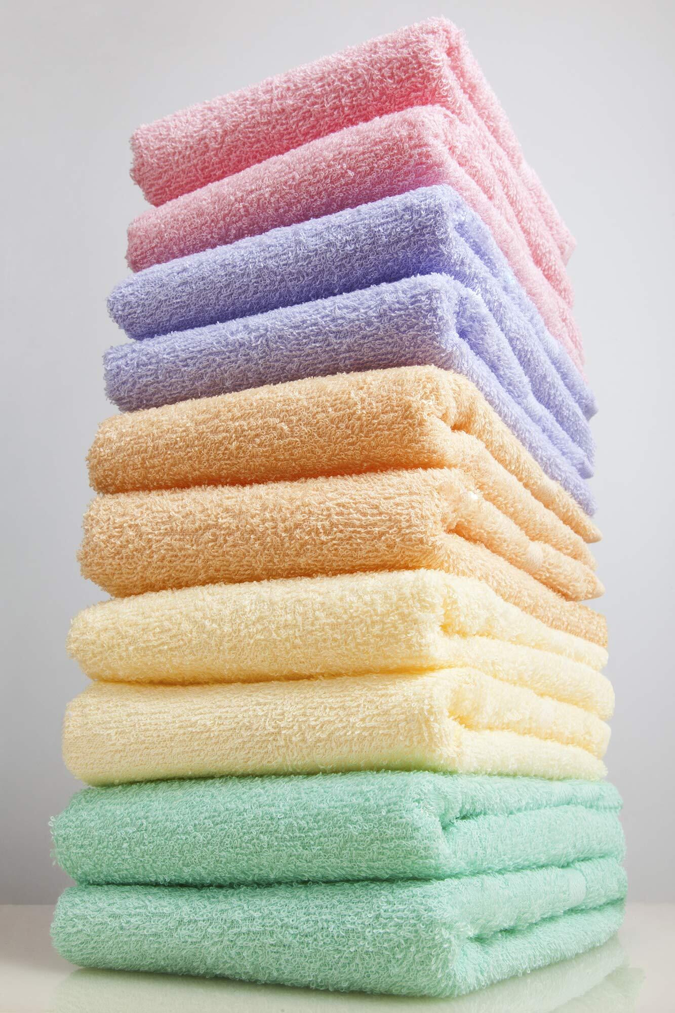 【薄くて乾きやすい! 薄くて絞るのが簡単! 】“この薄さが"普段使いに最適。たっぷり使えて、洗い換えにも便利な5色10枚セット。古くからたくさんの人になれ親しんでいただいている、昔ながらの“大阪泉州タオル"を心を込めてお届けいたします。