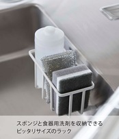 フィルムフックで簡単取り付け!スポンジと食器用洗剤を収納できるぴったりサイズのラック。