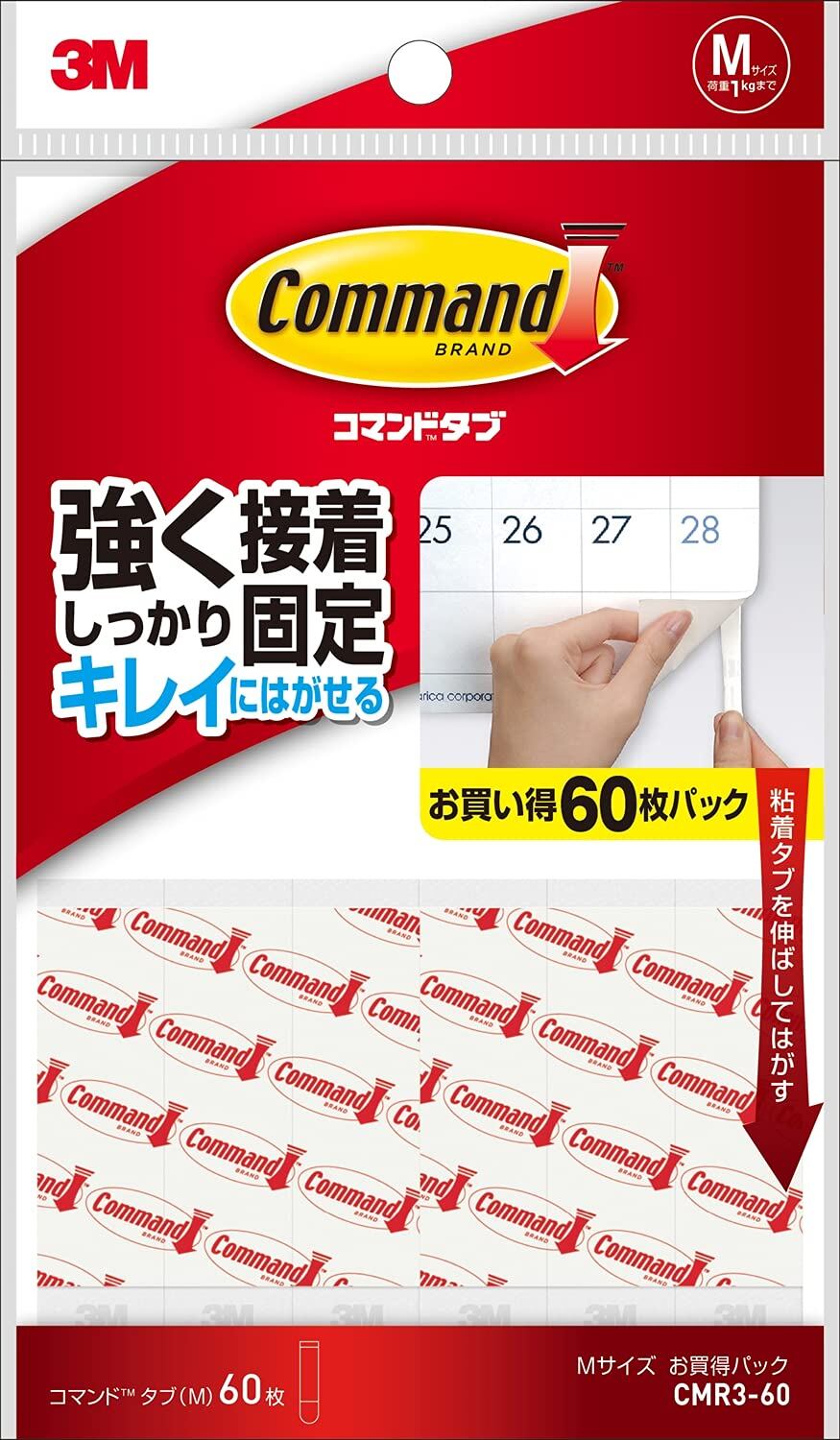 スリーエム(3M) 両面テープ コマンド タブ はがせる 60枚 白 Mサイズ 16×70mm CMR3-60