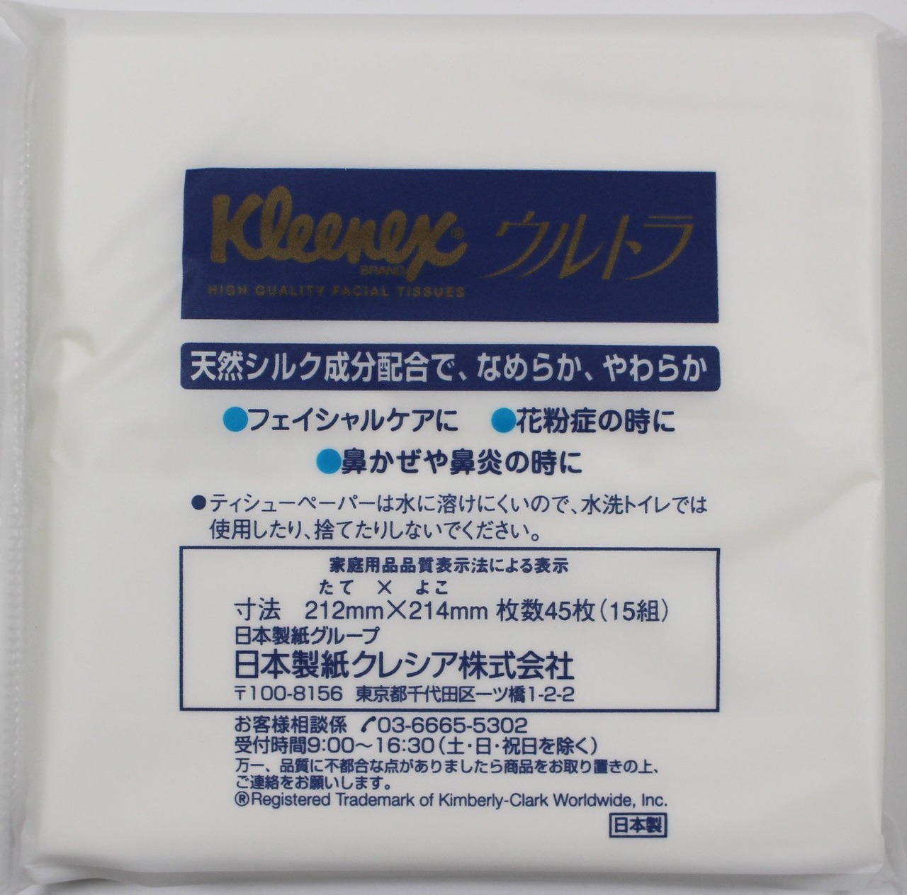 【まとめ買い】 クリネックス ウルトラ ポケットティシュー 3枚重ね 45枚 (15組) 2個パック ×10パック入り