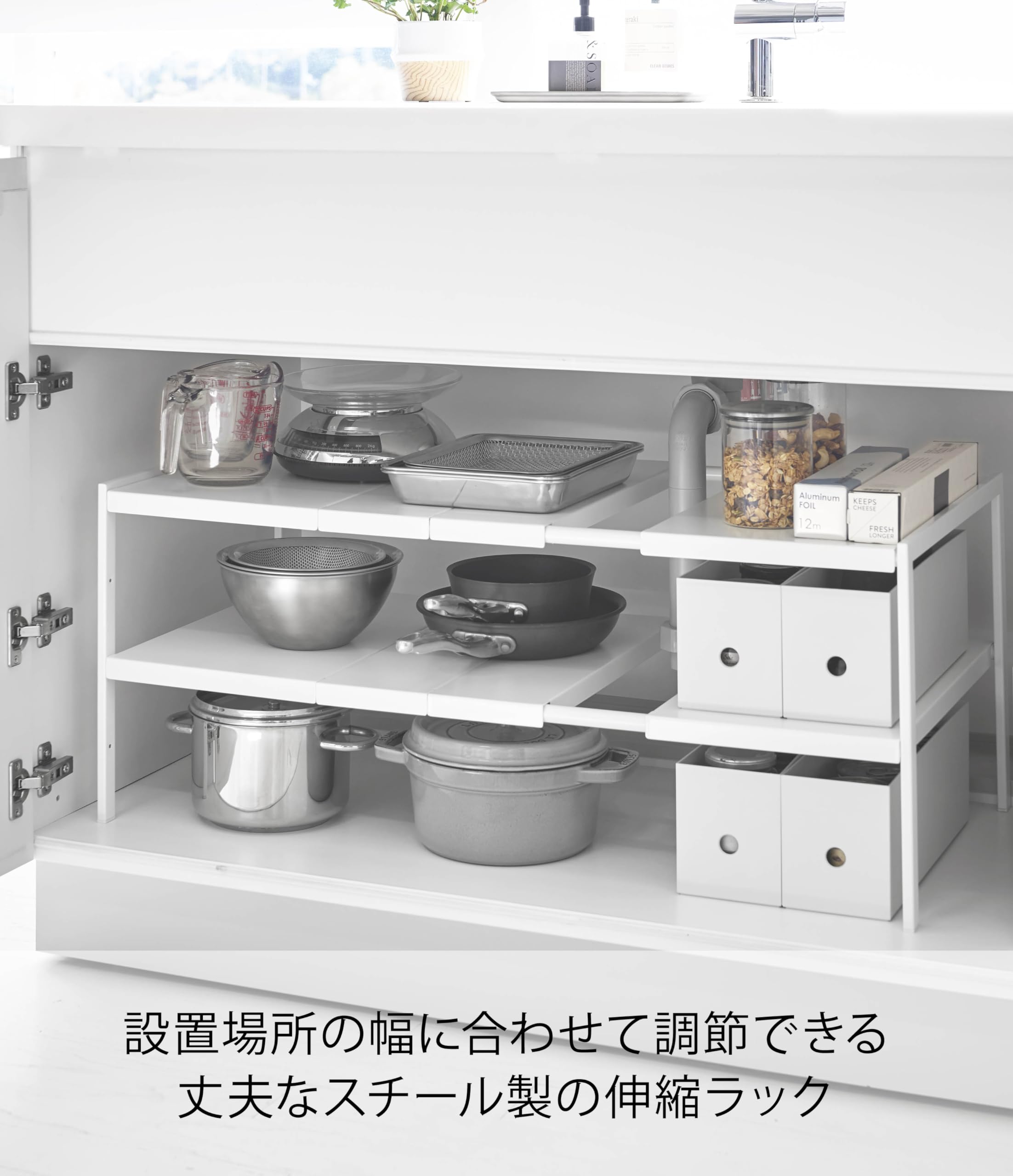 山崎実業(Yamazaki) 伸縮 シンク下ラック 2段 D40 ホワイト 約W50~85XD40XH35cm タワー tower シンク下 収納 6段階高さ調節 横幅調節 4950