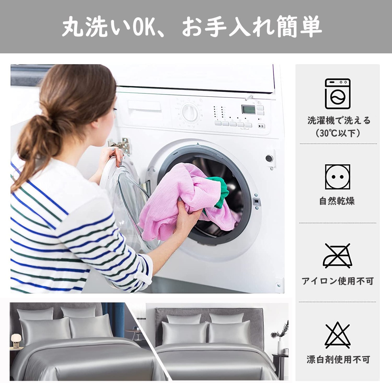 【ご自宅で丸洗い可能】:洗濯耐久性に自信あり!ご自宅の洗濯機で丸洗い可能、いつでも清潔に使えます。さらに速乾性により、梅雨の季節など、洗濯物の乾きにくい時期にも~いつも清潔!