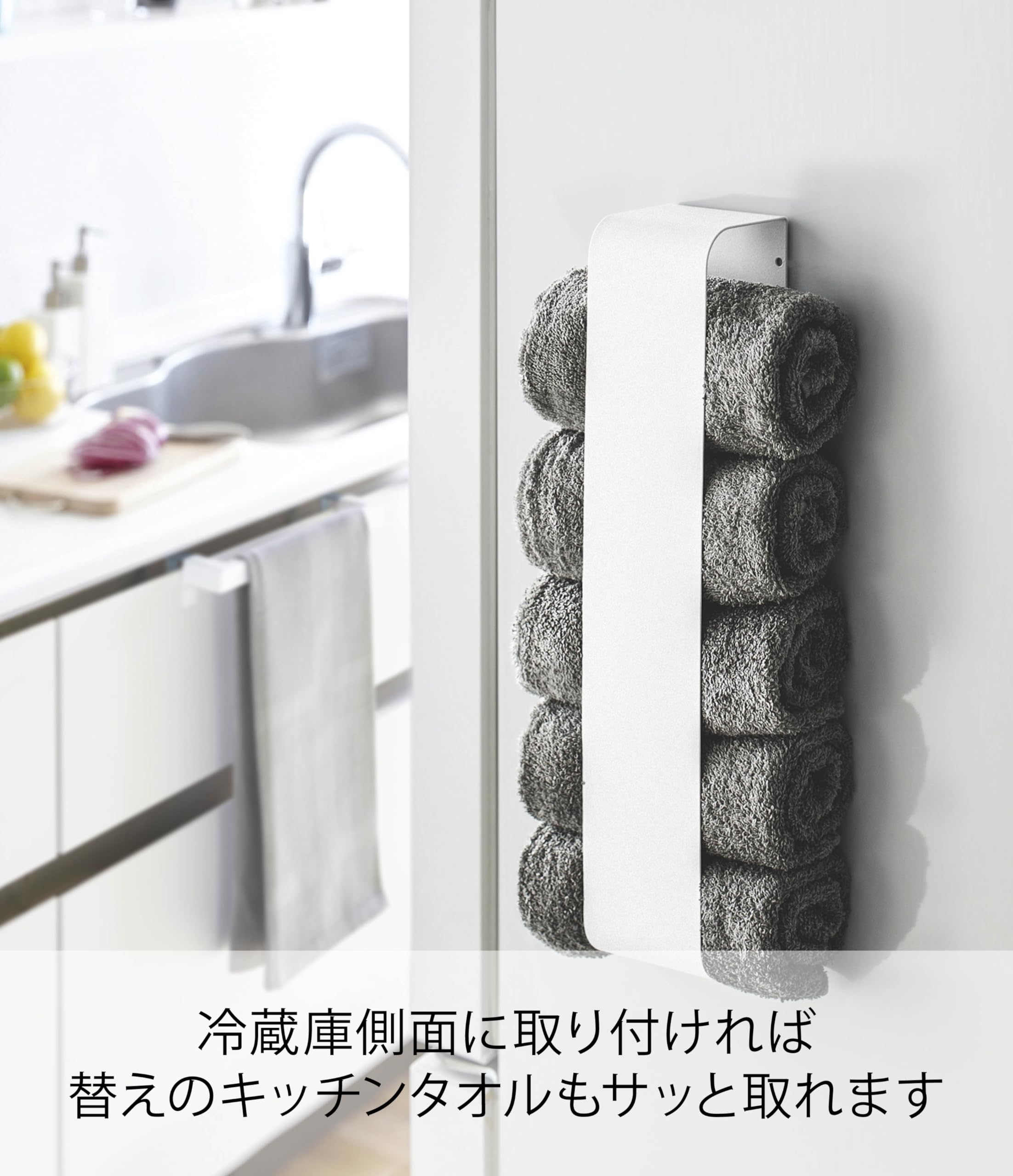 冷蔵庫側面に取り付ければ替えのキッチンタオルがすぐ取ることができます。
