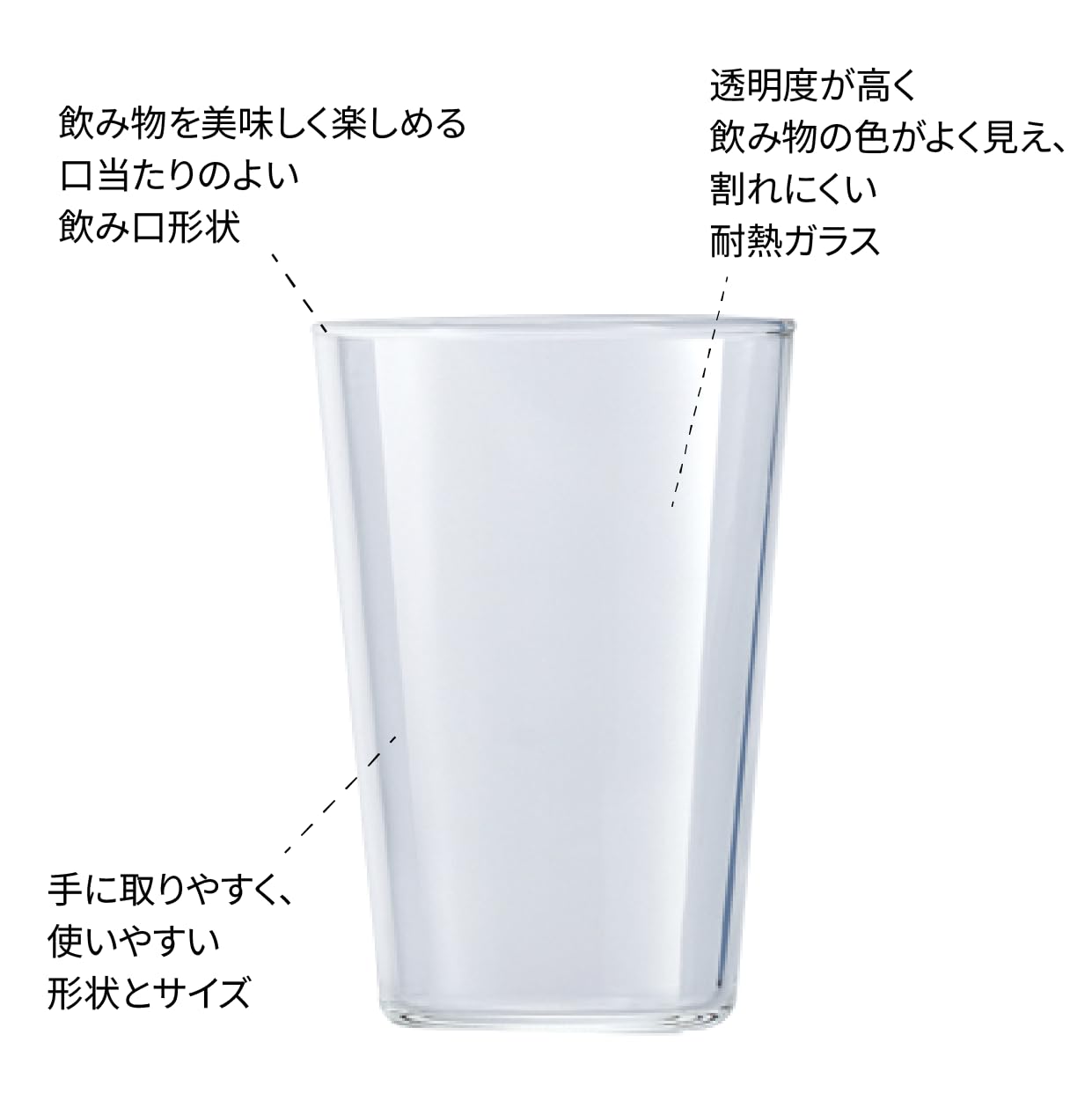 『THE GLASS』は、耐熱ガラス(耐熱温度差120℃)を贅沢に極限まで厚く用いることで、割れにくく、軽く、電子レンジや食器洗い機でも使えるグラスを実現しました。