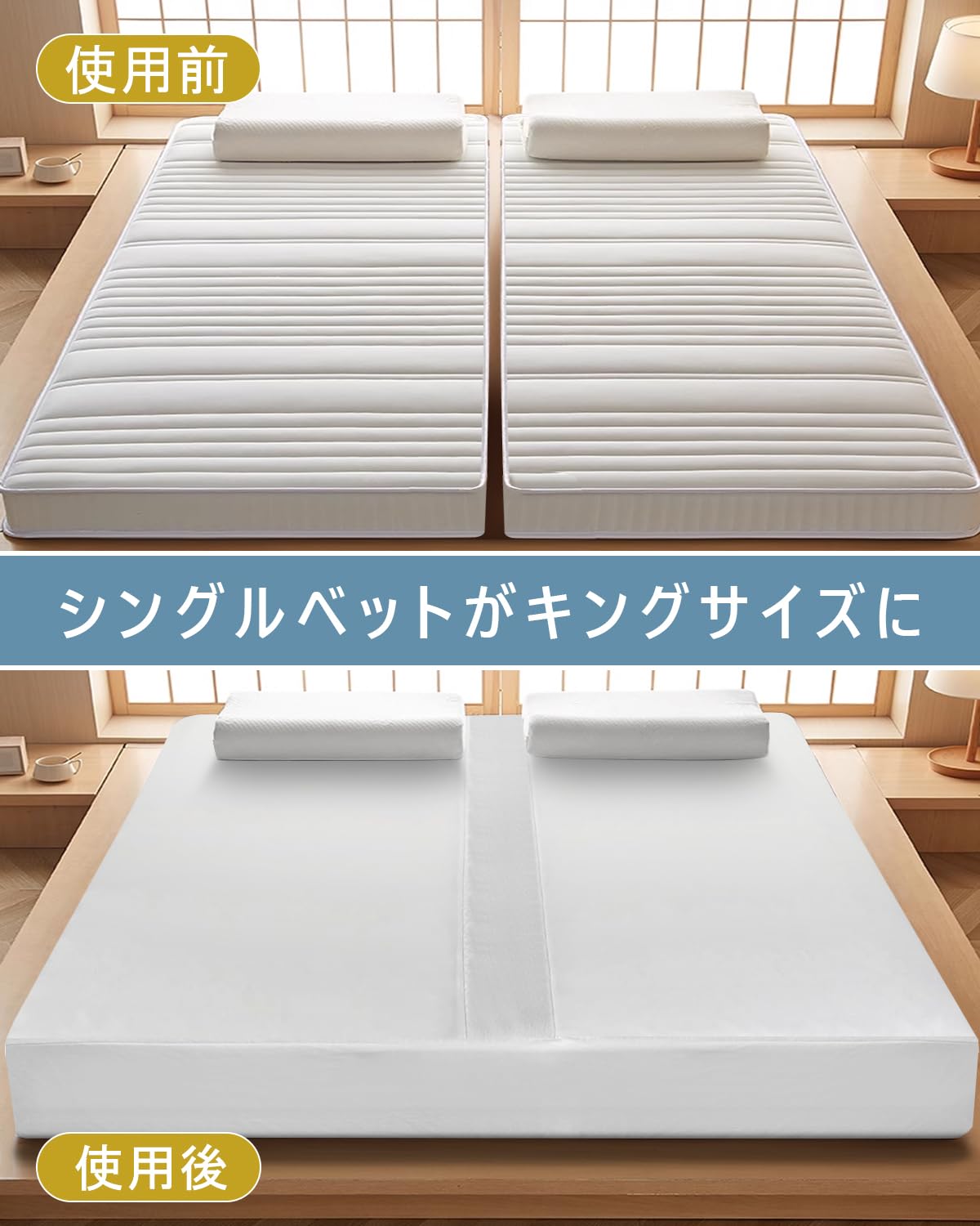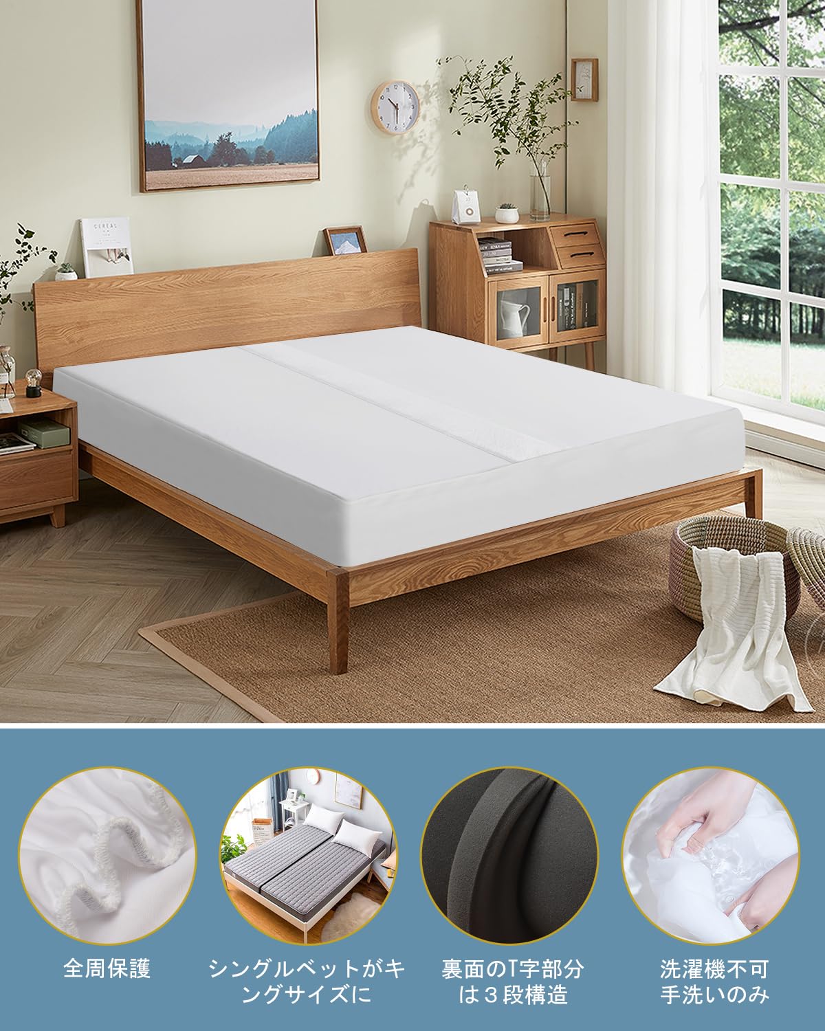 【対応サイズ】この商品はシングル+シングルサイズで、2つのシングルマットを一体化してキングサイズのように使用できます。超長いマチ部分:約30cm(5-30cmほど厚いマットレスにも対応可能)(※ご注文前にサイズをご確認ください。)