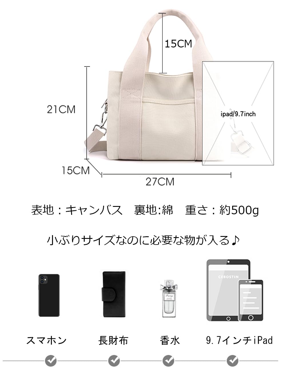 トートバッグ レディース キャンバス 小さめ ショルダーバッグ ミニトート マザーズバッグ ハンドバッグ 肩掛け 手提げバッグ 斜め掛け ランチバッグ おしゃれ かわいい 軽量 厚手 大容量