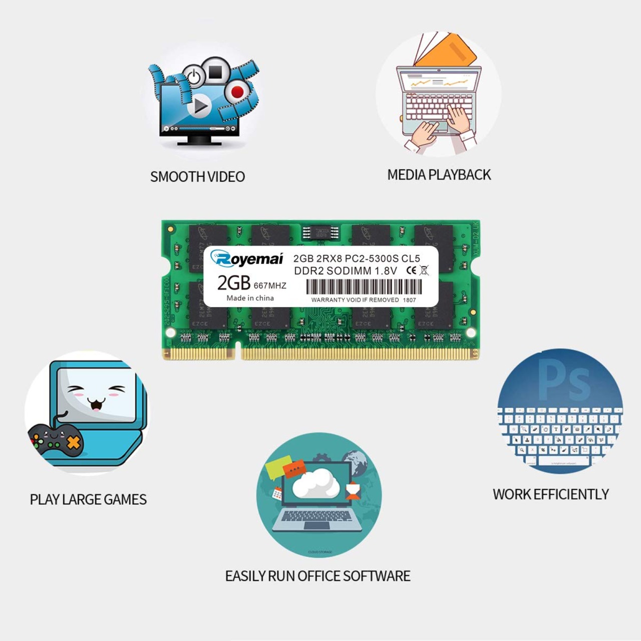 4GB 2X2GB ノートPC用 メモリ1.8V PC2-5300 DDR2 667 5300S 667MHZ 2GB×2枚 200Pin CL6 Non-ECC SODIMM RAM