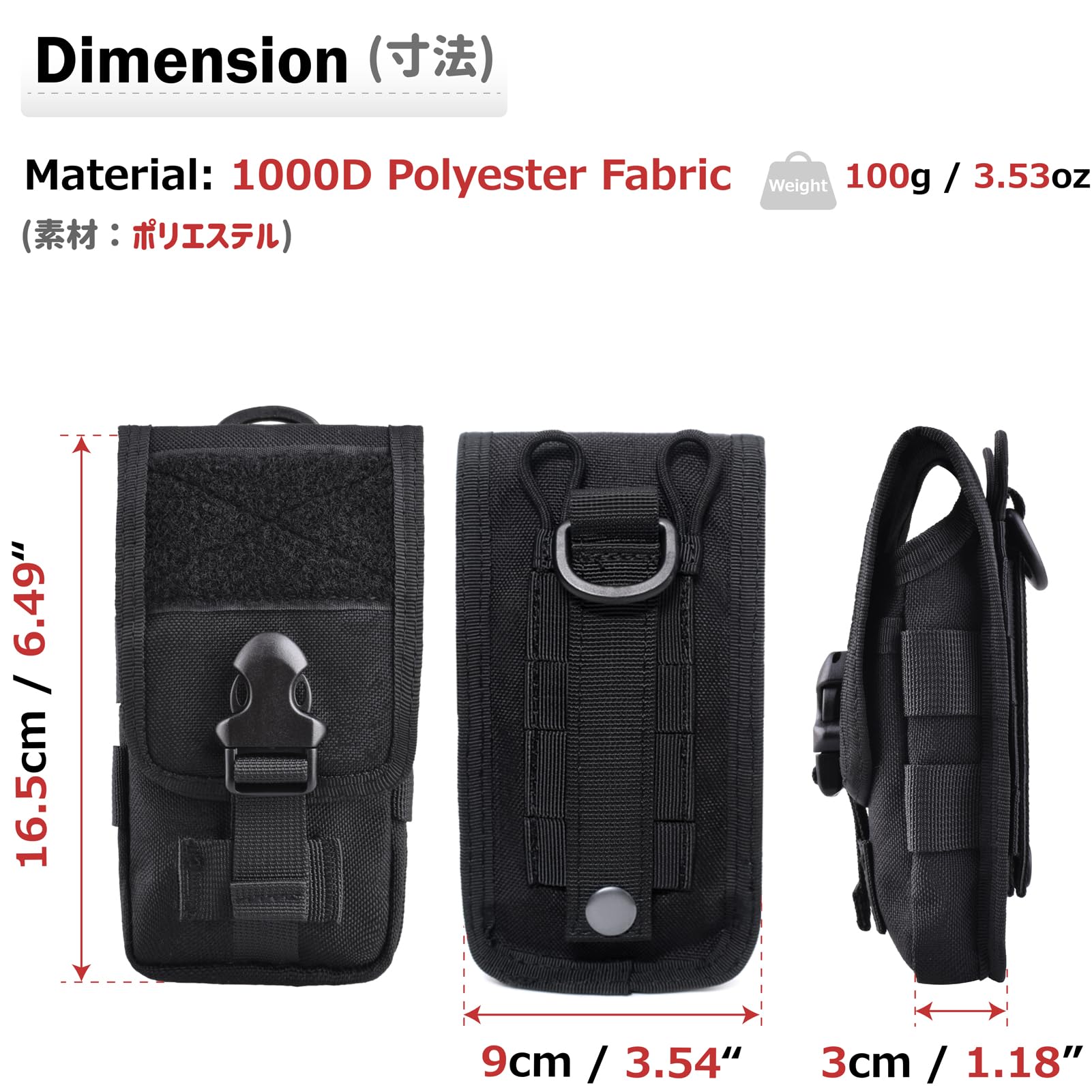 Azarxis スマホポーチ Molle対応 スマートフォン 手帳型 スマホケース モールシステム ユーティリティ EDCポーチ サバゲ― タクティカル ユーティリティポーチ (ブラック02) | geisha Cat*