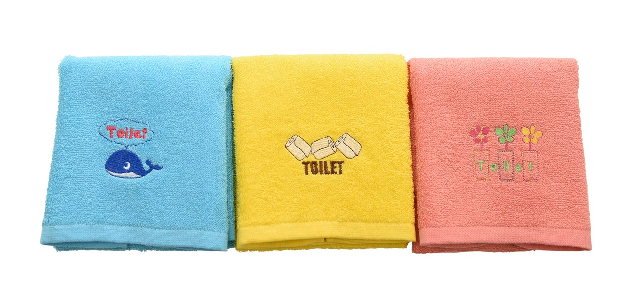 【シーンにあわせて使い分け】トイレスペースで大活躍! 生活シーンで選べるフェイスタオル。刺繍を見ればどこで使うタオルかすぐ見分けがつきます。