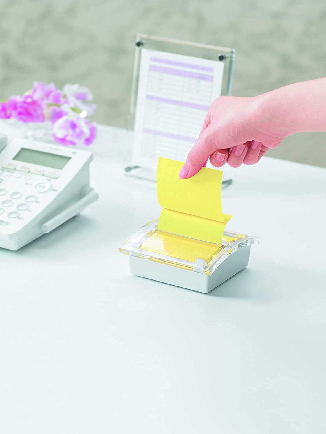 【デスクがすっきり!】ふせんをきれいな状態で保管できるポップアップノートディスペンサーでデスクを整理整頓。ふせんを定位置に置けるので、いつでも素早くメモが書けとれます。