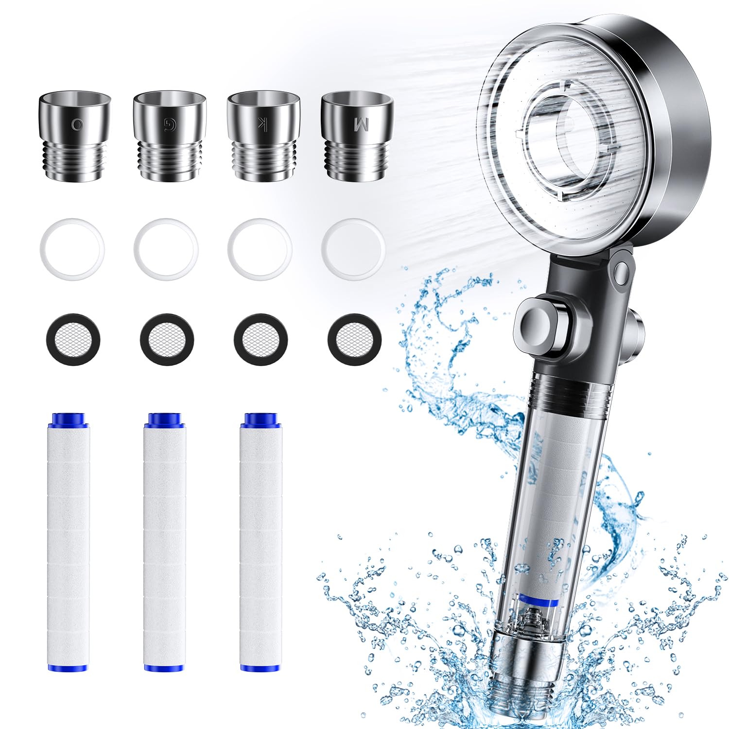 シャワーヘッド 節水 【増圧モデル&塩素除去】 マイクロナノバブル 80%節水 浄水しゃわーへっど ウルトラファインバブル 高洗浄力 3段階モード 手元止水 水流調整可能 軽量 節水シャワーヘッド 多角度調節 取付簡単 分解清掃可能 水漏れ防止 手持ち式シャワー 浄水カートリッジ3本付 国際汎用基準G1/2 日本語取扱説明書 (シルバー)
