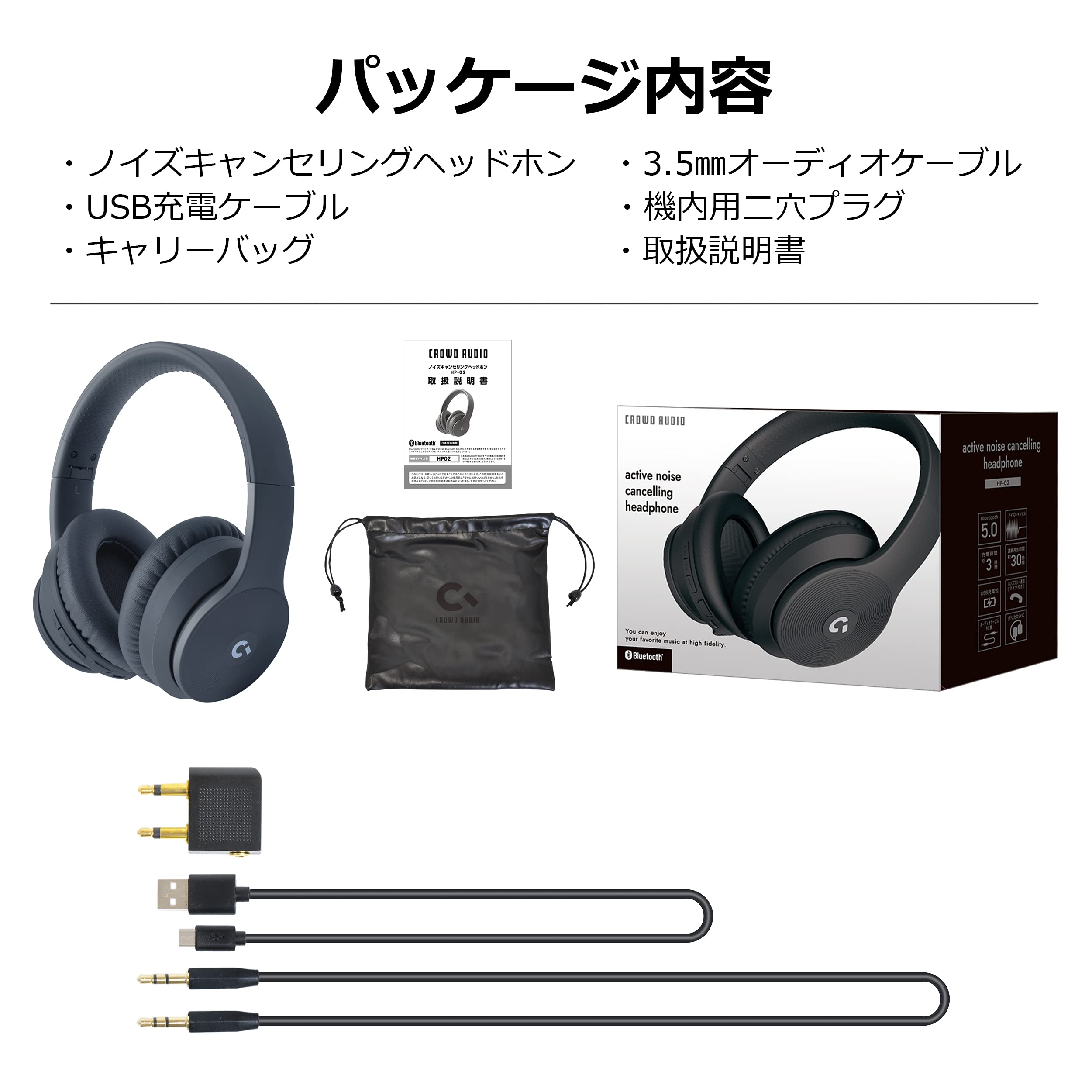 CROWD AUDIO(クラウドオーディオ) ANC アクティブノイズ キャンセリング ヘッドホン HP-02 | 密閉型 マイク付き音楽鑑賞 有線 無線 両用 音楽 ミュージック サウンド Bluetooth ワイヤレス 有線 黒 ブラック
