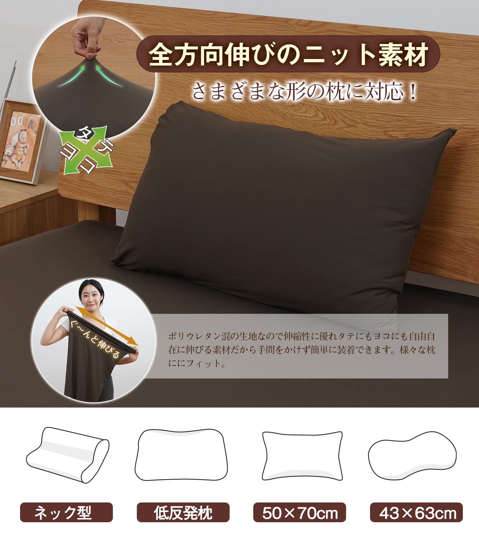 【3D伸びる・Tシャツ肌触り】枕カバー のびのび 枕カバー 2枚セット まくらカバー オールシーズン Tシャツ素材 封筒式 ピローケース 柔らかい ピローカバー さらさら肌触り 枕かバー 吸汗速乾 抗菌防臭 (枕カバー 50x70 CM ブラウン)