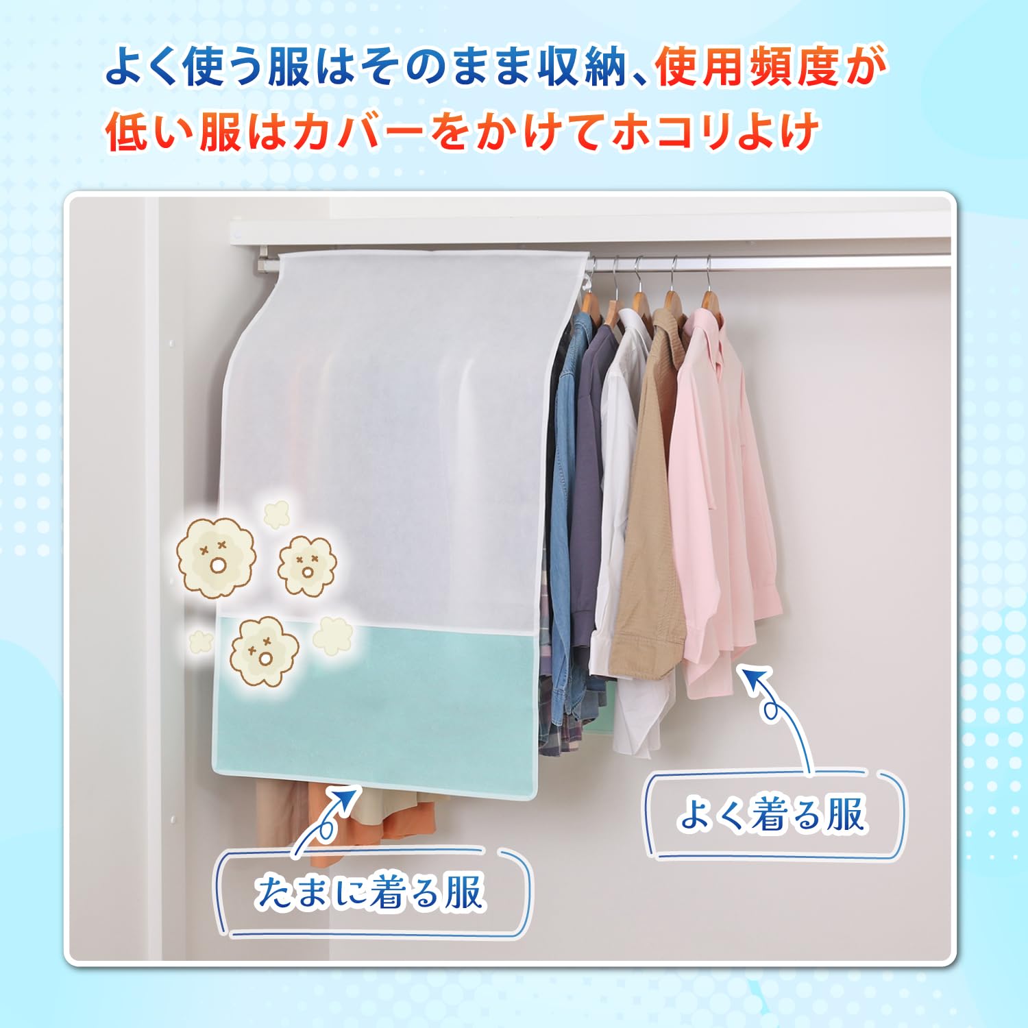 ●ハンガーラックやクローゼット内の衣類をホコリから守る。幅60cmのスリムサイズ。