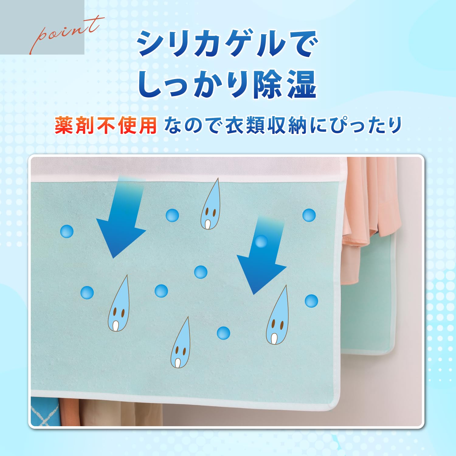 ●吸湿性に優れたシリカゲルを通気性の良い不織布で挟んだハンガーラックカバー。
