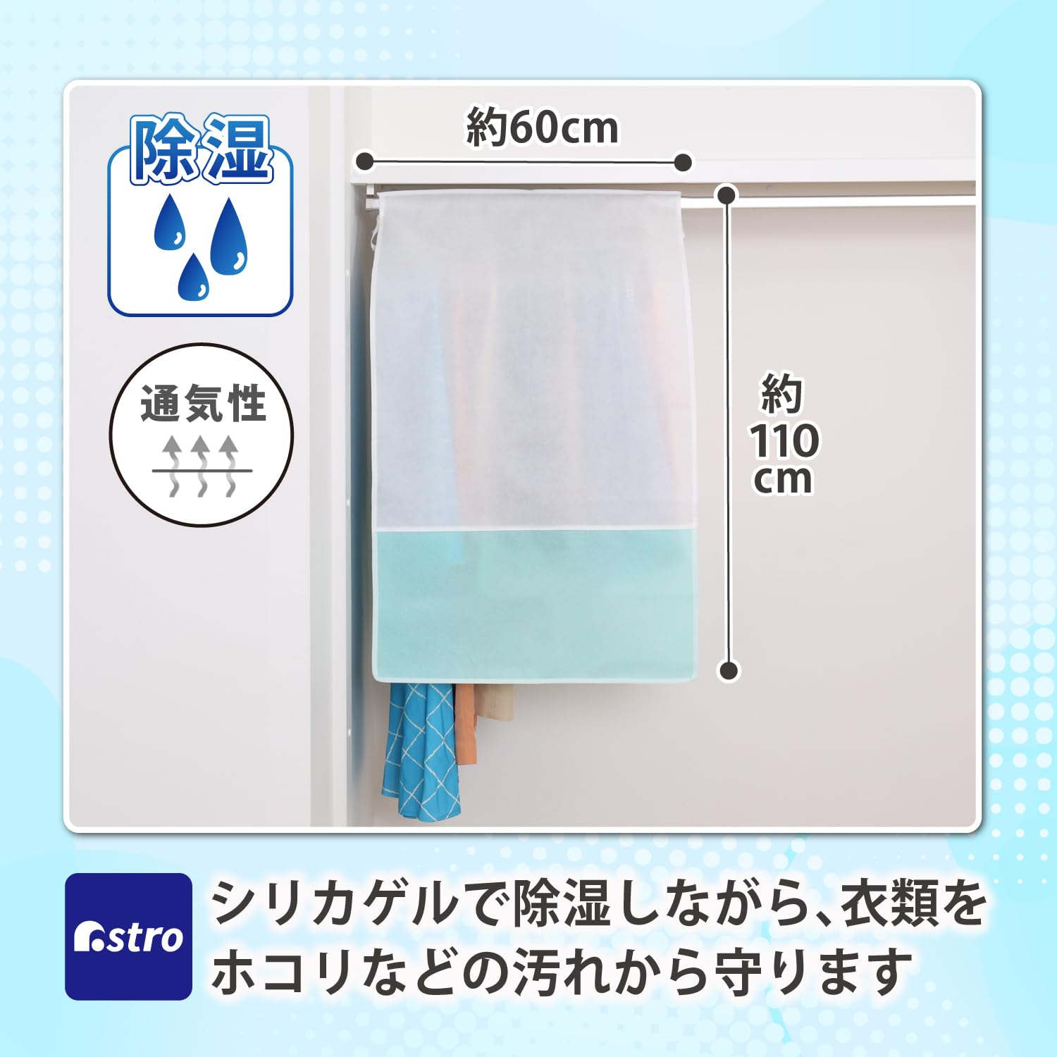 アストロ ハンガーラックカバー ホワイト×ライトグリーン 除湿 衣類カバー 洋服 埃除け 通気性の良い不織布製 乾燥剤 除湿剤 シリカゲルの力で吸湿 においを吸着 防塵 ずり落ち防止固定用ひも付き クローゼット 吊り下げ 614-86 | geisha Cat*