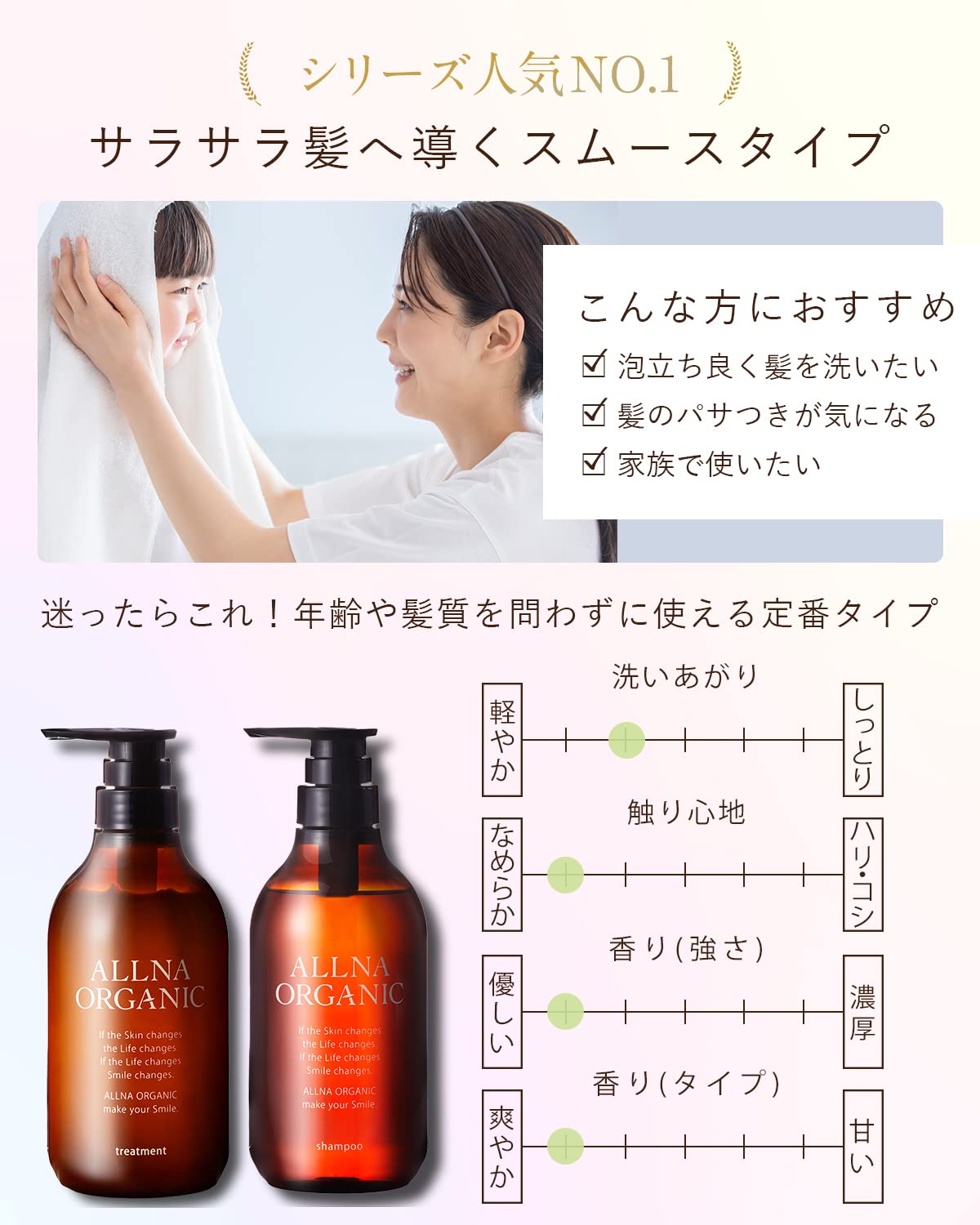 オルナ オーガニック シャンプー トリートメント セット 無添加 日本製 (スムース(ボトル・各500ml))