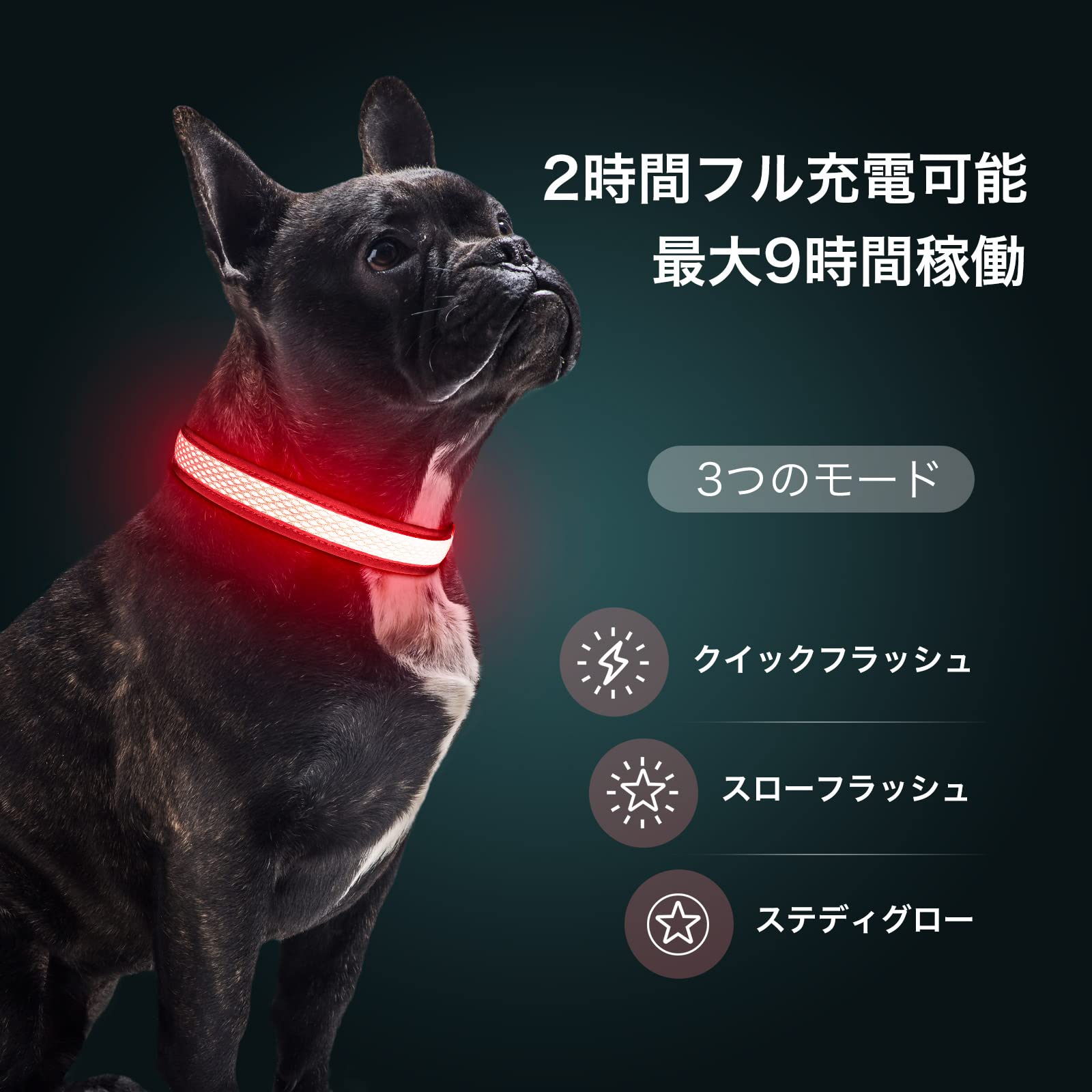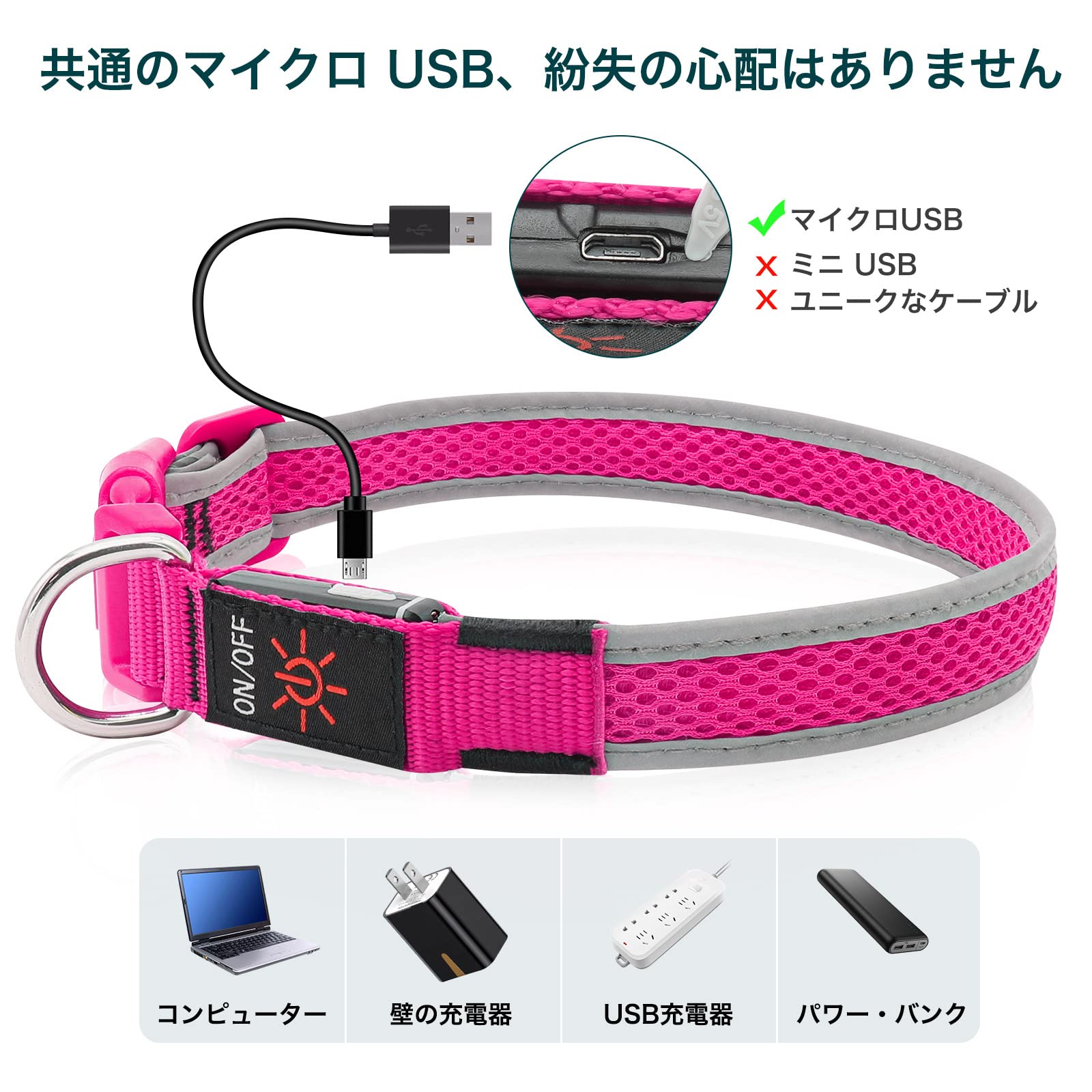 光る首輪 犬 散歩 夜 ライト LED 超明るい USB充電式 サイズ調整可能 ペット 犬 光る首輪 安全反射光 夜 ペット首輪 軽量 小型犬 中型犬 大型犬 ローズレッド S | geisha Cat*