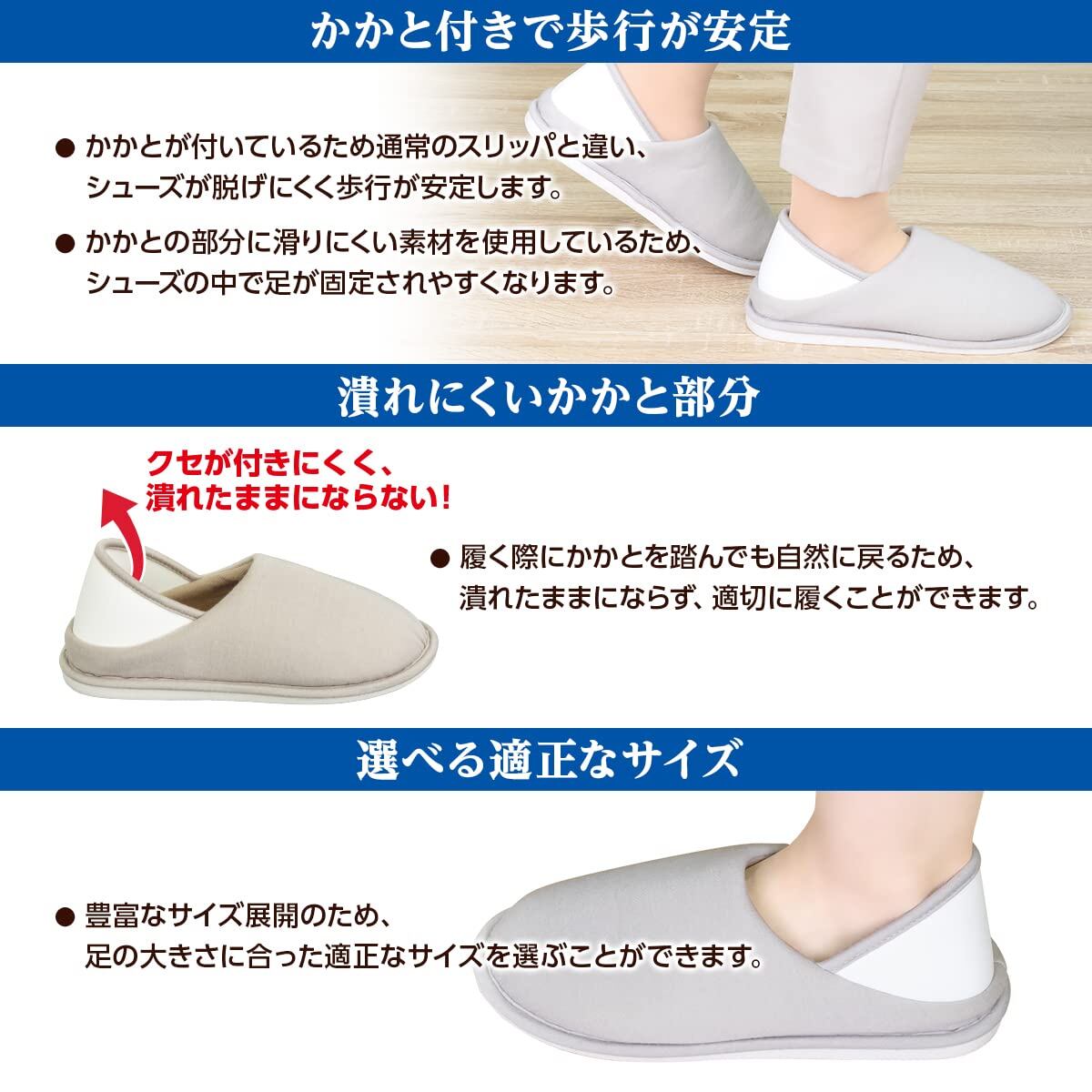 ●かかとが付いているため通常のスリッパと違い、シューズが脱げにくく歩行が安定します。