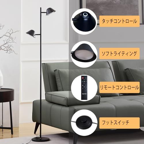 Joyly Home LEDフロアライト、20Wフロアライトリモコン付き、間接照明おしゃれ、調光・調色、タイマー、ダブルヘッドライト+タッチコントロールでスタンドライト、寝室/リビング/書斎/オフィス向き、ブラック