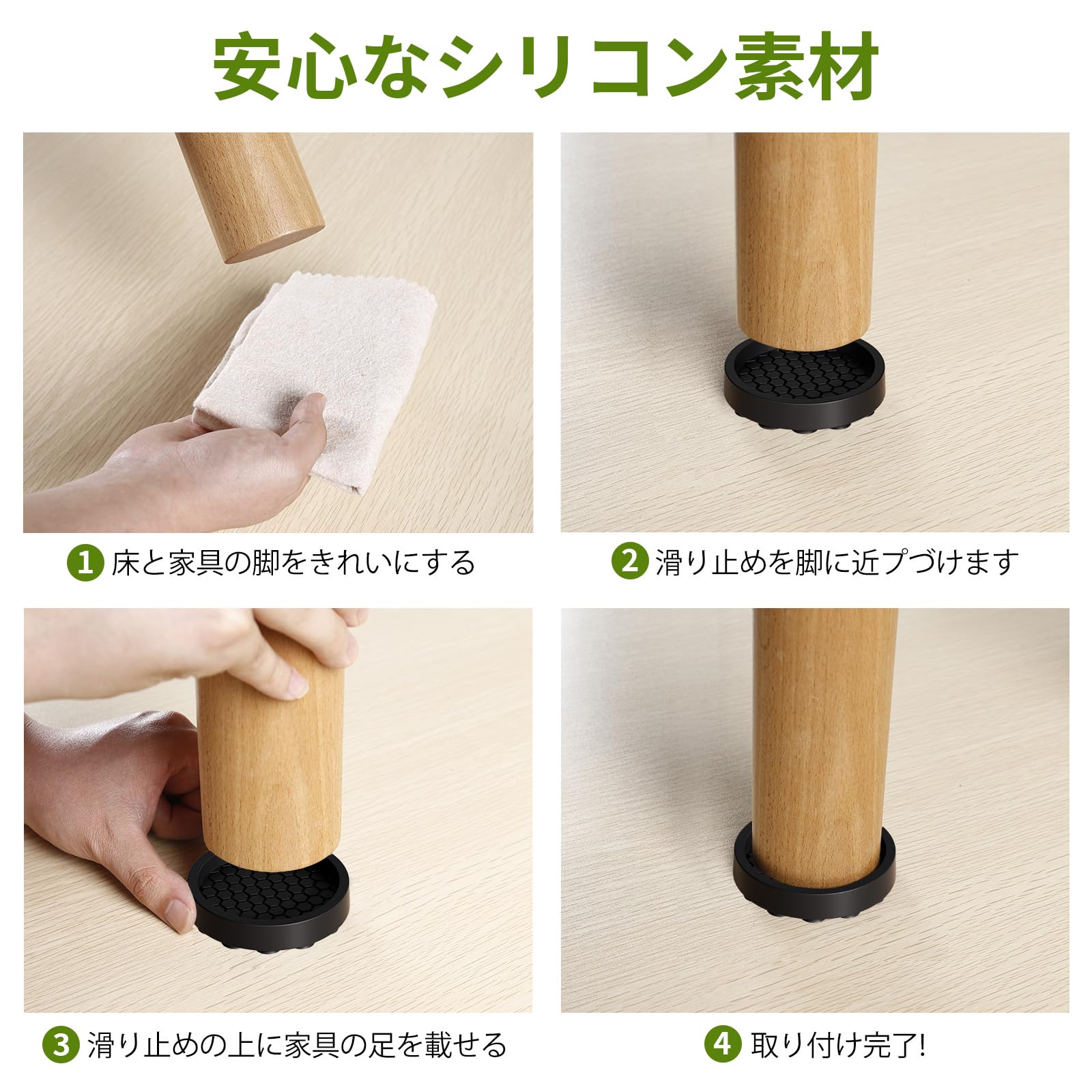 【特別設計で強力な滑り止め】 ソファー滑り止めシートは、ソファー用に特別に設計されています。丸いデザインで、ソファーやベッドの脚にぴったりフィットし、安定した固定を提供します。床にスリップしないように保護し、騒音を効果的に軽減します。さらに、木製床面の傷つきを防ぎ、家の静かな環境を維持します。