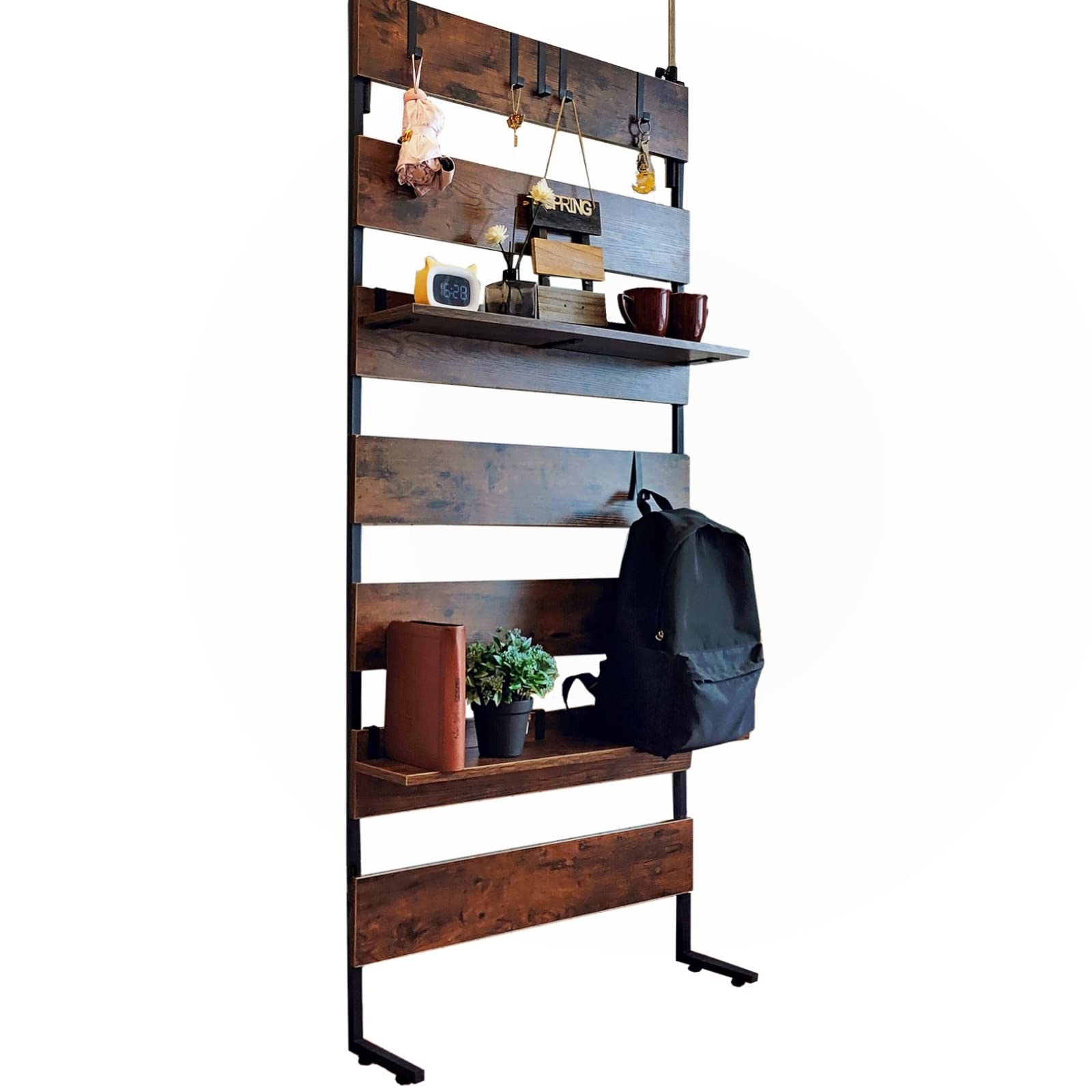 【本体サイズ】(約)幅80×奥行19.5×高さ200~260cm 【材質】本体:プリント紙化粧繊維板 脚部 フック:スチール(粉体塗装)つっぱりパイプ:スチール