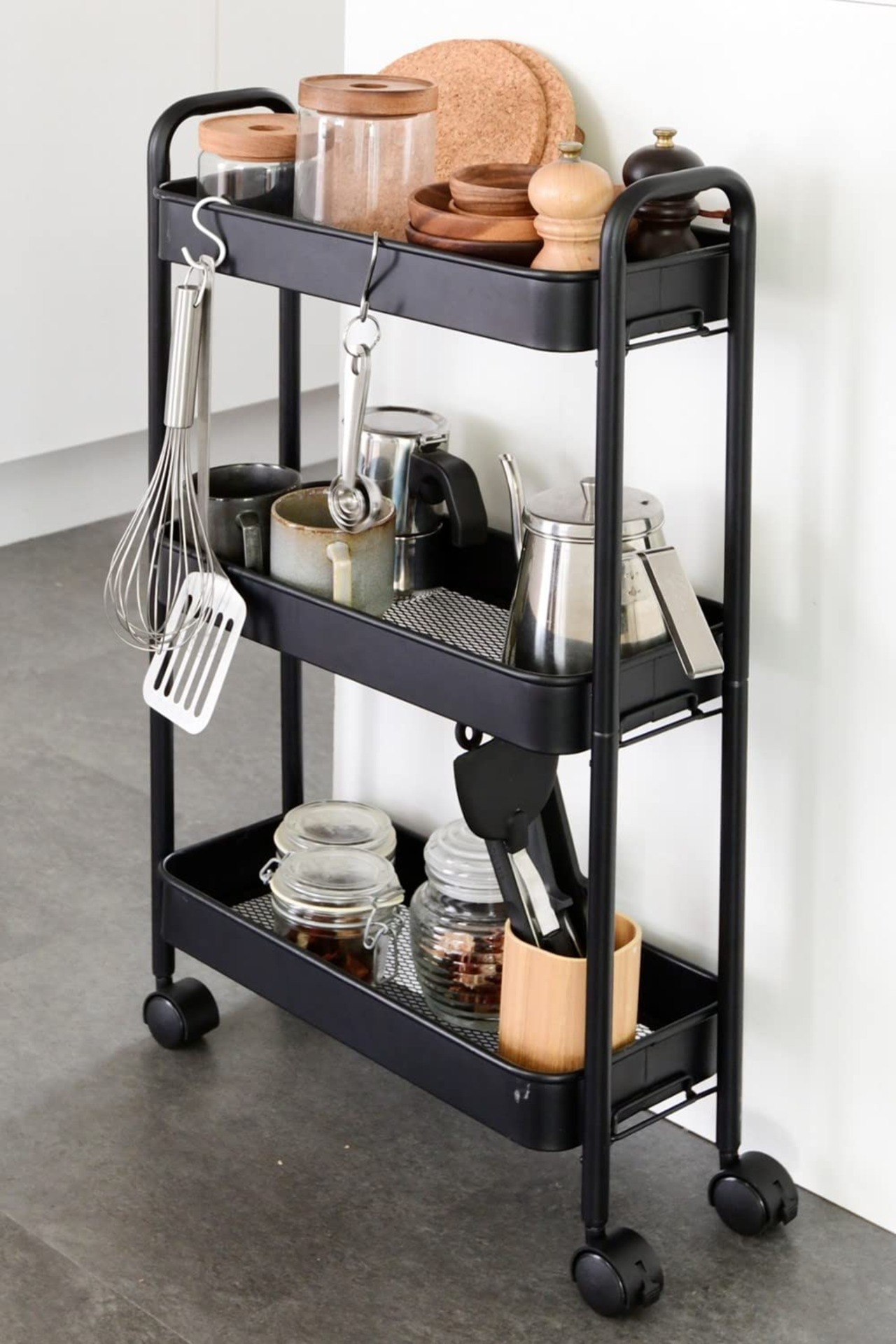 山善(YAMAZEN) キッチンワゴン (スリム) キャスター付き 3段 幅43.5×奥行18.5×高さ74.5cm ワゴン 組立かんたん ブラック LBW-3S(MBK) | geisha Cat*